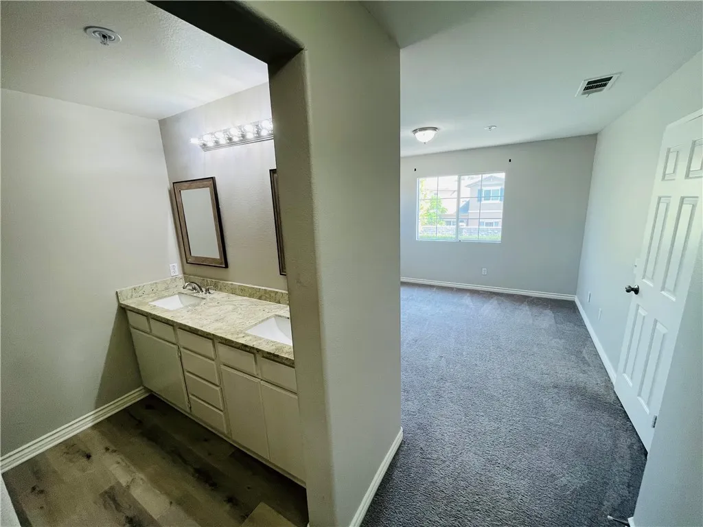 Beautiful Condo in the desirable gated community of Old School House in Murrieta. This is one of the larger 2 level units with with approx. 1654 sq/ft of living space, 3 Bedrooms, 2-1/2 Bathrooms, Den room, and a 2 car attached garage (with Level 2 EV Charging Station...Tesla compatible). As you walk in the front door, to the left features the den room with closet (perfect for sitting room, home office, play room, etc.), 1/2 bath, and laundry room (just off the garage adjacent to the kitchen). To the right as you walk in features the family room with cozy fireplace and then continues to the kitchen dining niche area. The spacious kitchen has quartz counter tops, black and stainless steel appliances, and white cabinets with plenty of storage. The upstairs has 3 bedrooms, guest and primary baths and a linen storage cabinet. The primary bedroom is spacious and the primary bath has dual sinks, tub/shower combo and a walk in closet. The home has recently updated paint throughout, upgraded luxury flooring throughout the downstairs and bathrooms and carpet on the stairs and upstairs throughout. The home also comes with washer, dryer and refrigerator. The back patio area is just outside the kitchen/dining niche area and provides plenty of space for your patio set and BBQ. This community is gated and comes with access to the Association pool & spa (right across the street about 30 seconds from the front door), grass areas, and is close to all types of shopping, restaurants, schools, and so much more...A Must See!