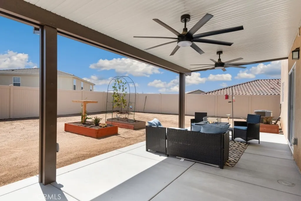 This stunning 2-year-old home offers lots of space, fully paid solar, no HOA, and modern finishes throughout. Situated on a large lot with an extended driveway and low-maintenance drought-tolerant landscaping, this property is perfect for both comfort and efficiency. Go inside to a spacious foyer and inviting great room floorplan with living, dining, and kitchen seamlessly connected. The kitchen boasts granite countertops, sleek gray cabinetry, stainless steel appliances, and a large center island with bar seating for fourperfect for entertaining. A main-level bedroom and full bath with shower provide flexibility for guests or multigenerational living. Upstairs, enjoy a versatile loft, convenient laundry room, 4 well-sized bedrooms, and 2 bathrooms. The spacious primary suite features a walk-in closet and en suite bath with dual sinks. Outside, relax under the Alumawood covered patio with ceiling fans overlooking the private backyard with vinyl fencingready for your personal touch. All this in a prime location close to schools, shopping, and dining optionsthis is the perfect place to call home!