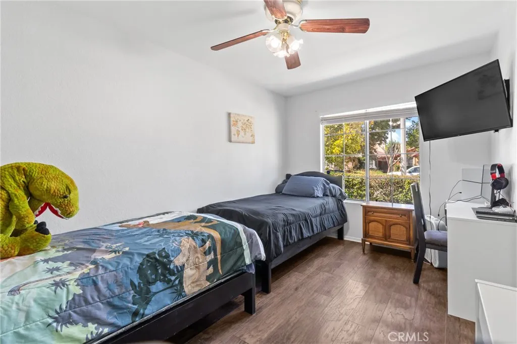 Welcome to this beautifully upgraded home, thoughtfully improved inside and out for style, comfort, and convenience. The front exterior features new copper piping, cleared drainage, synthetic turf, fresh paint, and lighting that highlights the landscaping, along with an electronic gate for easy access. The side driveway has been extended with concrete, the gate reinforced, and dual EV charging stations installed. Inside, the home shines with fresh paint, added insulation, wood flooring in the living room, custom blinds throughout, and new fans and lighting in every room. The bathroom has been upgraded with new piping, sink connections, and modern fixtures, while all outlets have been replaced for peace of mind. A new roof, solar panels, and a recently replaced AC unit add lasting value and efficiency. The garage has been converted into a modern JR ADU, and includes its own kitchen, bathroom, and new cabinets perfect for extended living or income opportunities. The main home features high ceilings, granite countertops, tile and laminate flooring, a walk-in closet in the primary suite, and a smart thermostat with central AC and heating. The oversized backyard, storage shed, and RV access provide plenty of space and flexibility for future plans. Conveniently located near Antelope Valley Mall, Amargosa Commons, Palmdale International Shopping Mall, and close to local parks, this home offers both everyday ease and outdoor recreation, with quick access to the 14 Freeway for commuting.