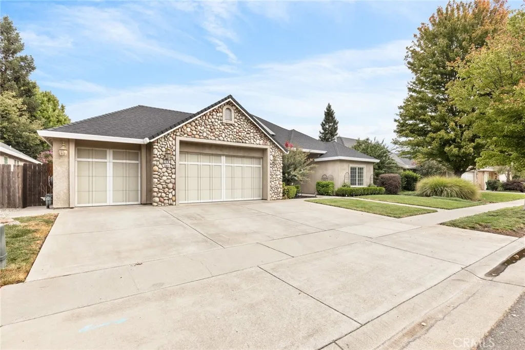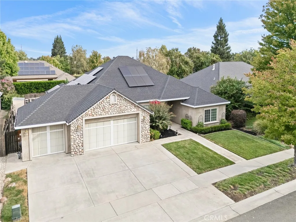Location, location, location! Tucked away in one of North Chicos most sought-after neighborhoods, this home blends comfort with modern style. Inside, youll find gleaming hardwood floors, soft neutral tones, and walls of windows that fill the space with natural light. The inviting living room is anchored by a cozy fireplace, making it the perfect place to gather. The kitchen is designed for both everyday living and entertaining. It features warm wood cabinetry, granite counters, stainless steel appliances, a gas range, walk-in pantry, and a breakfast bar thats perfect for quick meals. Just off the entry, the formal dining room offers the ideal setting for holiday dinners and family celebrations. Your primary suite is a private retreat with plenty of space, a walk-in closet, and a spa-like bath complete with dual sinks, soaking tub, and walk-in shower. Three additional bedrooms, an indoor laundry room with sink and storage, and a 3-car garage provide all the function you could need. Added bonuses include recessed lighting, ceiling fans throughout, and owned solar to help cut energy costs. Step outside to your beautifully landscaped backyard, complete with a spacious patio for barbecues, green lawn for pets, and raised garden beds ready for your favorite plants. In a neighborhood known for its charm and convenience, this home truly checks every box. Dont miss your chance to make it yours!