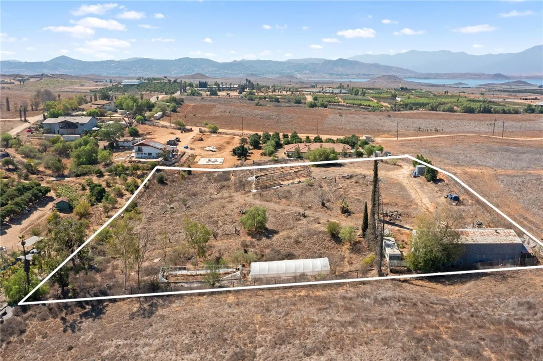2.5-Acre Custom Lot with Lake Mathews Views Land of the Hawk Rare opportunity to build your dream estate in the historic Land of the Hawk, now part of the 9,000-acre Lake Mathews Estelle Mountain Reserve. This 2.5-acre parcel features a flat building pad, electricity, private well with storage tank, and a large barn. Enjoy 360 panoramic viewssnow-capped San Bernardino Mountains to the north, and sunsets over Lake Mathews and the Ortega Mountains to the south before fading into the Pacific. Surrounded by preserved land, this property offers lasting privacy and unmatched natural beauty. A one-of-a-kind setting to design and build your custom home.