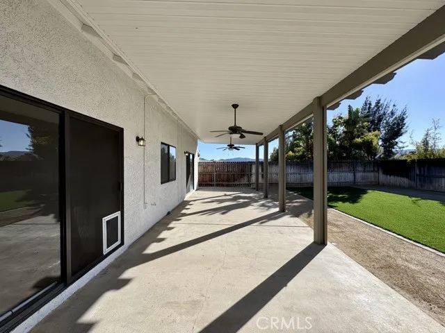 ?Move-In Special!? Move in by October 1st and receive HALF OFF your first months rent! Welcome to this beautifully upgraded 3 bedroom, 2 bathroom home in Wildomar, offering comfort, style, and a fantastic location! Enhanced with brand new artificial turf in both the front and backyard, this home delivers low maintenance living and year round curb appeal. Inside, youll love the stunning oak flooring, fresh white paint, and high ceilings that create a bright, open layout. Living room offers ample natural light and has a cozy brick fireplace! The upgraded kitchen features sleek quartz countertops, crisp white cabinetry, and black appliances making it perfect for all your culinary needs. All bedrooms are conveniently located down the hallway, including a spacious primary suite with a private sliding door to the backyard, two separate closets, and an ensuite bathroom with dual sinks and an oversized shower/tub combo. Additional highlights include inside laundry with washer & dryer included, abundant storage, and an attached 2 car garage. The backyard is ideal for entertaining with its oversized covered patio, brand new turf, and plenty of room to relax or play. This home offers easy access to the 15 freeway, shopping, dining, and a brand new center currently under construction. Parks, schools, and more are all nearby, making this an unbeatable location. Schedule a showing today and take advantage of this amazing move-in special before its gone!