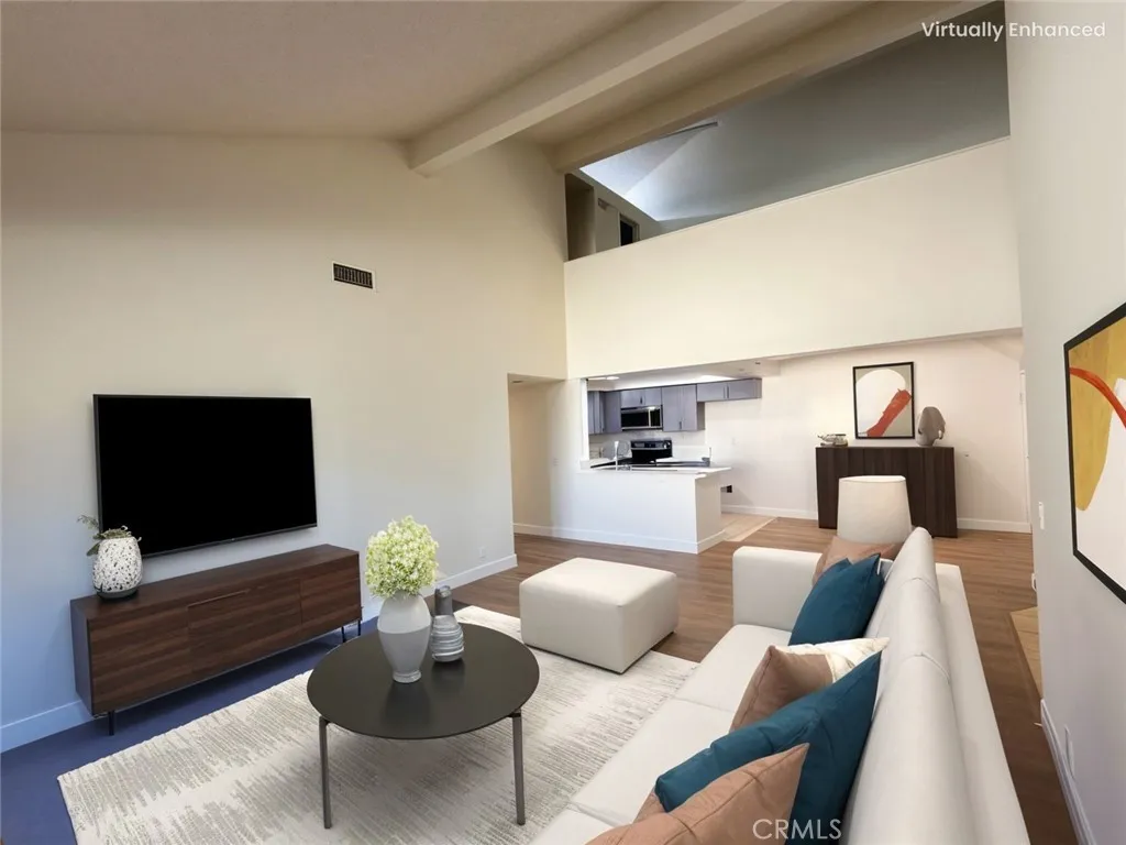 Upgraded private condo in Phillips Ranch featuring 2 bedrooms, 2.5 bathrooms, and a spacious loft. The loft includes a half bath and can be used as a 3rd bedroom or office. Recent updates include wood-look flooring and fresh paint. The modern kitchen has never been used and comes with gray shaker cabinets, quartz countertops, stainless steel appliances, and a single-bowl sink. The open floor plan offers cathedral ceilings, and the kitchen connects directly to the living room. A balcony off the living room provides space for BBQs, with a laundry room for washer and dryer conveniently located there. Community amenities include a pool, spa, and guest parking. This unit includes a one-car garage and an assigned parking space. HOA fees are paid by the landlord and cover water and trash.