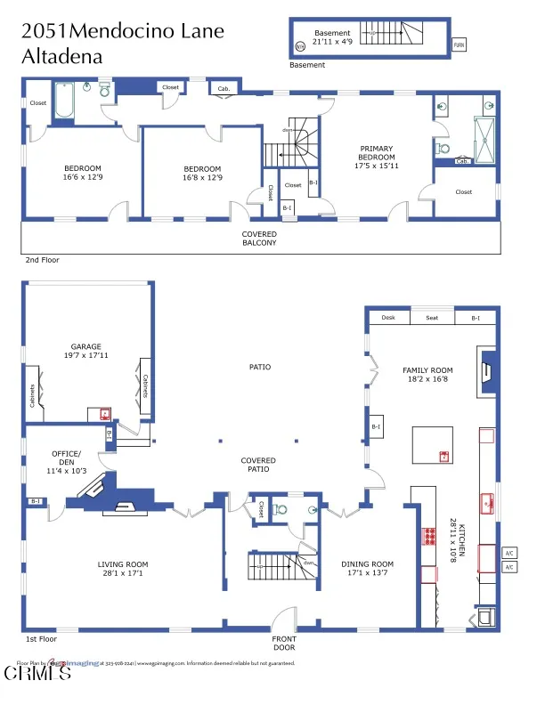 Following the palm trees to the mountains is where you'll find this grand Monterey Colonial residence located on what has always been Altadena's most iconic street. Meticulously maintained by the same family for 28 years, this home is truly a treasure. The sweeping front yard, with mandarin and avocado trees, welcomes you home. Gleaming hardwood floors greet you at the front door and flow throughout the house. A formal entry leads into the living room, with beamed ceiling, crown moldings and a beautiful fireplace anchoring the room. Nearby is a cozy office with a brick fireplace, which makes for an ideal space to work from home. A spacious formal dining room provides a great setting for dinner parties and flows to the kitchen and family room. The updated kitchen has a large island with counter seating, plenty of cabinets for storage and a wine refrigerator. Vaulted ceilings, bookshelves and a fireplace make the family room a comfortable spot to relax while being close to the kitchen. A powder room completes the first floor. All main floor rooms have french doors that exit to the rear patio, ideal for entertaining. Upstairs is the sizable primary ensuite bedroom, with two walk-in closets and attached bathroom with two vanities. Two spacious bedrooms with large closets share a stylish hallway bathroom. All 3 bedrooms have doors to the second floor balcony that runs the length of the home. The backyard has an expansive brick patio, mature lemon and apple trees, and a lush garden, the perfect place for dining outdoors and enjoying the evening breeze. A 2-car garage is attached