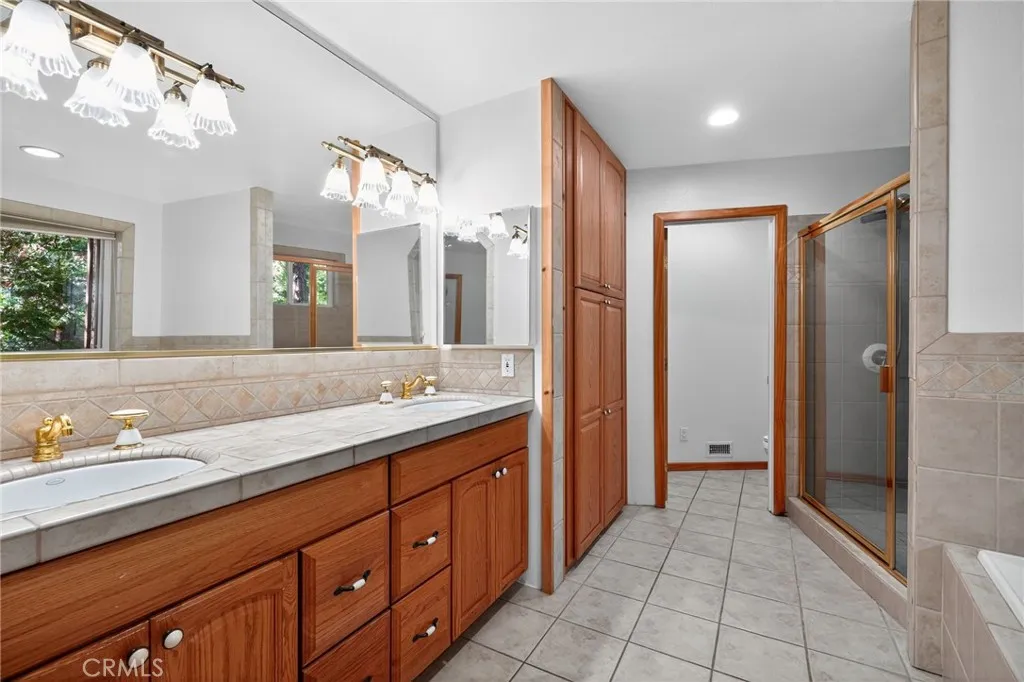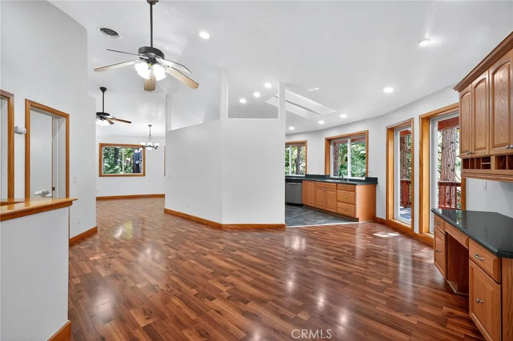 Discover this newer, beautifully maintained home nestled among 360-degree views of majestic trees. The upgraded kitchen features elegant granite countertops, perfect for cooking and entertaining. A soaring high-ceiling living room is bathed in natural light, enhanced by a stunning Sky Lite that brings the outdoors in. The space also includes a dedicated workstation and cozy denideal for remote work or creative pursuits. The luxurious master suite offers a spa-like experience with a soaking tub, a walk-in shower featuring dual shower heads, a double vanity, and a spacious walk-in closetdesigned for comfort and style. Enjoy energy efficiency and year-round comfort with double-pane windows and a sliding glass door that opens to serene forest views. The spacious 3-car garage and extended driveway offer ample parking, while the generous lot provides plenty of room to build an ADU (Accessory Dwelling Unit) for guests or rental income. In addition, the property features an extra den, bedroom, and full bathroom located adjacent to the garagea flexible layout perfect for a guest suite, home office, or potential income property. Conveniently located close to town, shops, and restaurants, this home offers the perfect balance of accessibility and tranquility. Step outside to explore nearby hiking trails and biking paths, and embrace a lifestyle rooted in wellness, adventure, and the wild beauty of Idyllwild.