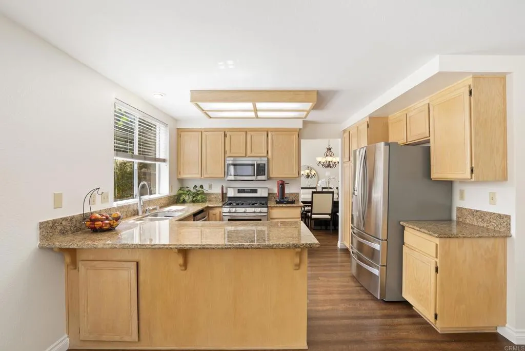 Welcome to your dream home! Located within one of Oceanside's most highly desired neighborhoods, Montage of Rancho Del Oro. This stunning four-bedroom, three-bath single-family home is move-in ready, yet provides room for your personal touch. Experience Pride in Ownership throughout this beautifully remodeled home, where no detail has been left untouched. Soaring vaulted ceilings create an open, airy ambiance and seamlessly blend comfort with style. Upgrades include dual-pane windows, recessed lighting, attractive laminate wood flooring, and fresh interior paint. The expansive floor plan features a Bedroom with a Full Bath on the first floor, perfect for an office or guest quarters. The spacious larger two-car attached garage offers abundant storage and bonus parking bay perfect for a golfcart or motorcycles. The open-concept entertainer's kitchen features granite countertops and backyard views, while the adjacent dining room provides an ideal space for gatherings. The family room, complete with an inviting fireplace, and kitchen open directly to a spacious backyard. The mature, low-maintenance landscaping enhances the tranquil outdoor retreat, featuring a covered patio, Australian Babul Tree, fruit trees (lemon and lime), and beautiful flowers (hibiscus, plumeria, and roses) creating an ideal setting for relaxation and outdoor entertaining. Upstairs, the primary suite is a luxurious escape with an ensuite bathroom, dual closets, and separate shower and tub. Enjoy proximity to Gallery Park and Mance Buchanon Park with soccer fields, playgrounds, and trails, as well as Libby
