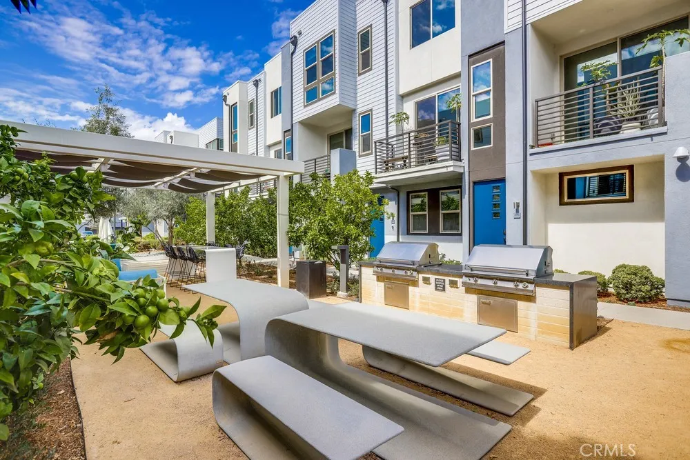 Welcome to MDL, a gated, amenity-rich community located in Uptown Irvine. This light-filled townhouse features a three-story design. The first level contains a 2-car, direct-access garage. The second is the main living level and boasts a generous open floor plan that includes a family room with a deck, a powder room, dining area, and a chef's kitchen with quartz countertops and stainless steel appliances. The third floor has dual primary suites. Enjoy a central courtyard with a resort-style pool with a spa and cabanas, an outdoor fireplace, seating areas, BBQs, a dining terrace, a tot lot, and a clubhouse. Located close to great retail and dining centers such as The District, Park Place Center, University Town Center, and South Coast Plaza, as well as Mason Regional Park, Back Bay Newport, and John Wayne Airport. HOA dues are included; small pets are considered with an additional deposit.