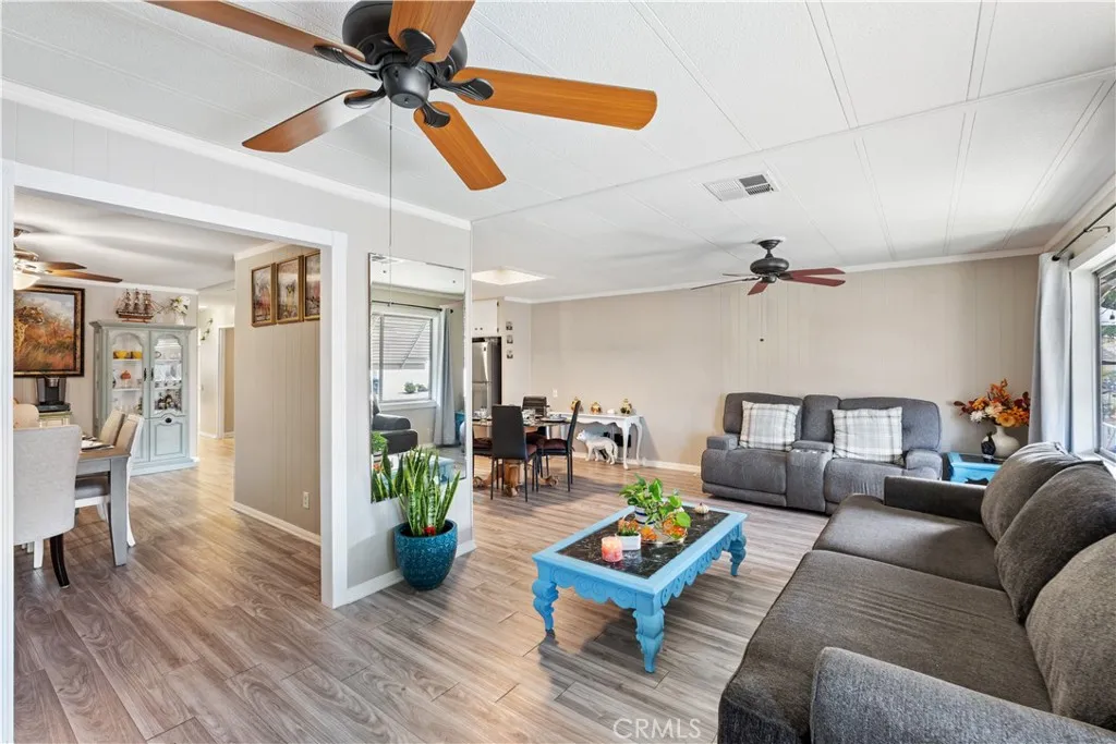 Located in a desirable 55+ senior community in the heart of Menifee, this spacious 2-bedroom, 2-bath home offers comfort, convenience, and modern upgrades throughout. Inside, youll find an inviting open floor plan with a separate living room, dining room, and family room, making it ideal for both entertaining and everyday living. The primary suite features a huge walk-in closet, while brand-new flooring enhances the beauty of the entire home. This property is filled with upgrades, including a brand-new AC unit, new oven and gas stove, new dishwasher, garbage disposal, and water heater. The backyard is enclosed with a brand-new vinyl fence, and both the front and back yards feature fresh artificial grass for easy maintenance. Ceiling fans in every room provide year-round comfort, and a convenient ramp by the carport ensures easy access for those who may need it. With very low space rent at just $695.27 per month, this home offers excellent value in a welcoming community. Buyers will need park approval, with an income requirement of three to four times the monthly rent. Priced right to sell, this home is a wonderful opportunity to enjoy affordable and comfortable living in a great Menifee location.