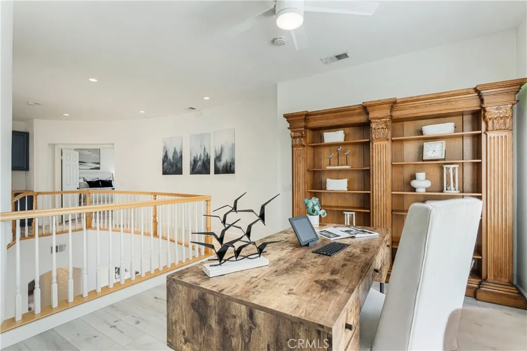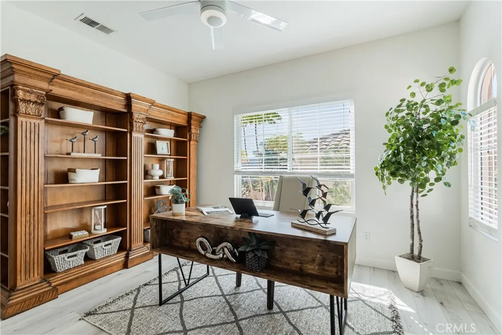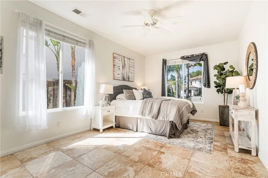 VIEWS + CASITA + Fully OWNED SOLAR & NEW HVAC System! Positioned at the end of a quiet cul-de-sac on one of Redhawk's most prized streets, this 4-bedroom, 3-bathroom home offers 3,353 sq. ft. and impressive panoramic views. This popular floor plan includes a main-floor casita with a private entrance and a full ensuite bathroom which makes it perfect for guests, family, home business or a neat art studio...so many possibilities. Inside, the home features an open layout with upgraded flooring, recessed lighting, two fireplaces and tons of natural light pouring in from all over. The kitchen is appointed with granite countertops, stainless steel appliances, and freshly repainted cabinets. A large upstairs loft provides a flexible space for a second living area, home office or play area. The owners suite is a true retreat, boasting a double-door entry, generous space, a spa-like bathroom, large walk-in closet and all with stunning views of the valley and mountains. The backyard is designed for entertaining and privacy, featuring a flagstone patio, a tranquil fountain, and mature queen palms, no rear neighbor and all set against unobstructed views. This home is equipped with a FULLY OWNED 33 panel solar system, EV charger, new HVAC system, dual thermostat and whole house water filtration system. Located within the acclaimed Great Oak School District and benefiting from low taxes and a low HOA, this home is just minutes from Redhawk Golf Course, Old Town Temecula, and local wineries. This is a rare opportunity to own one of the best locations in the neighborhood.