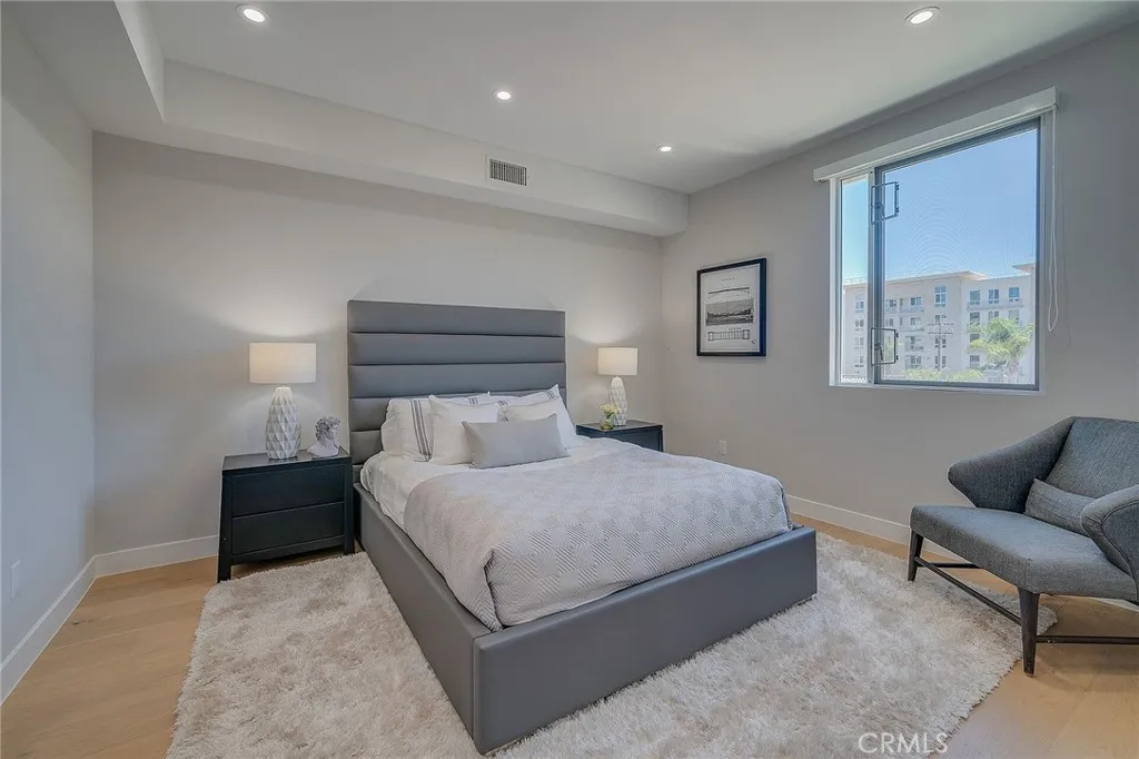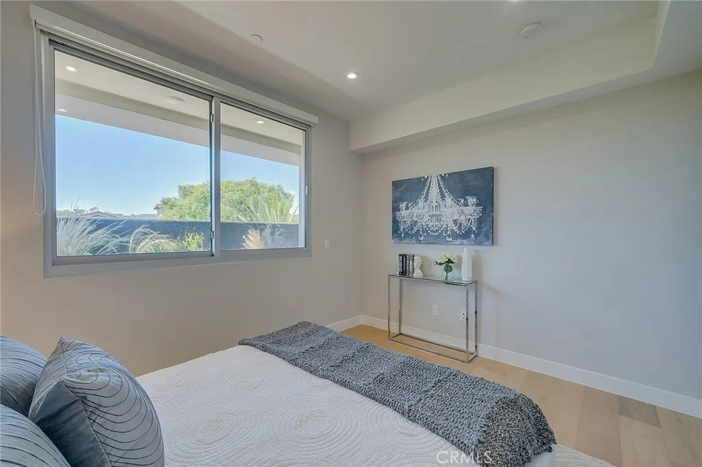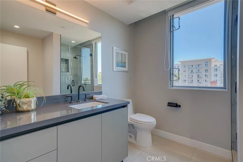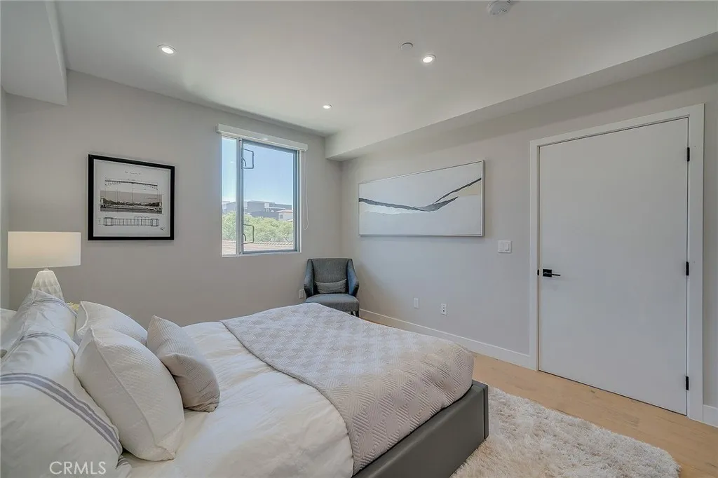 Epitomizing ultramodern luxury, this captivating condominium in West Hollywood is a visionary masterpiece with unforgettable views reaching the Hollywood Sign. Spanning the entire 1350 sqft top level of a high-performance building, this newly constructed condominium with smart technology showcases a distinctive style and palette that highlights its aesthetic beauty. Flooded with natural light from expansive glass, elevated living spaces are framed by floor-to-ceiling windows and retractable doors, offering an effortless indoor-outdoor lifestyle. A stunning top-of-the-line kitchen with quartz and stainless accents opens to an elegant dining and living area, creating a fashionable venue for entertaining. Inspired by the ethos of five-star resorts, dual primary suites expand to include tailored closets and lavish baths. Finished with muted European oak floors, private balcony, and secured parking. Moments from L.A.s legendary entertainment, this picturesque environment celebrates a high walk score of 93. Surrounded by the Sycamore District and blocks from the epicenter of iconic landmarks, the locale embodies the essence of Hollywood.