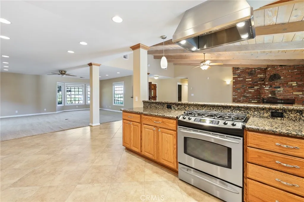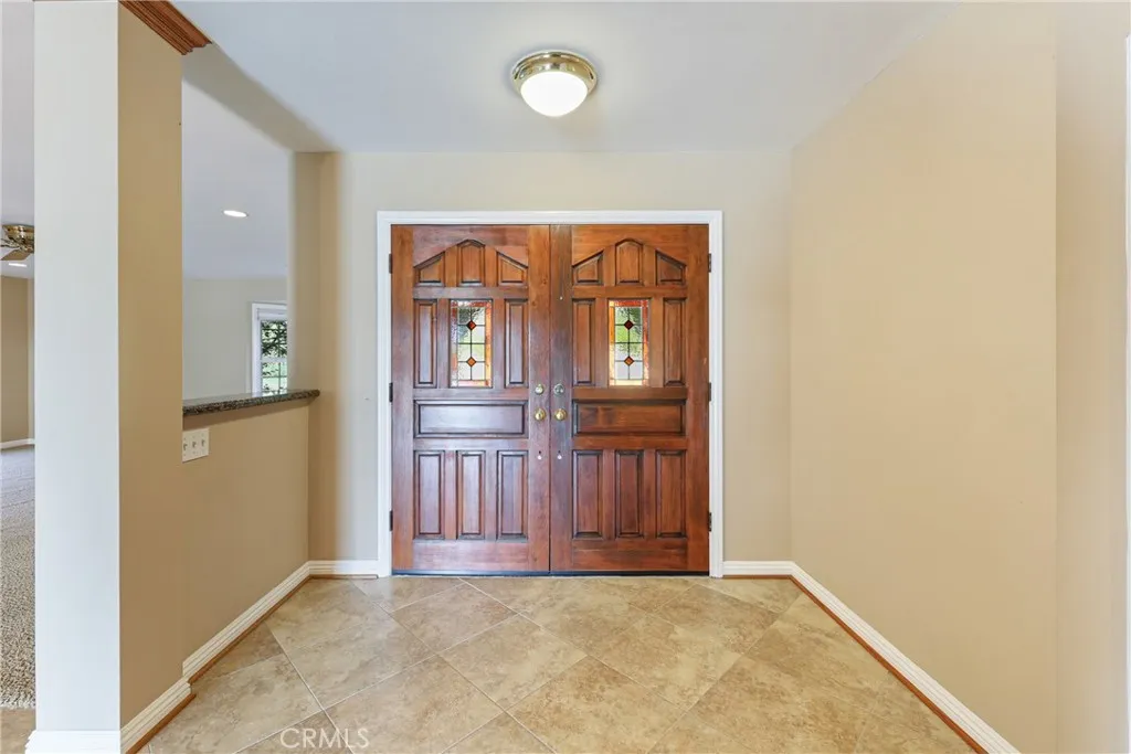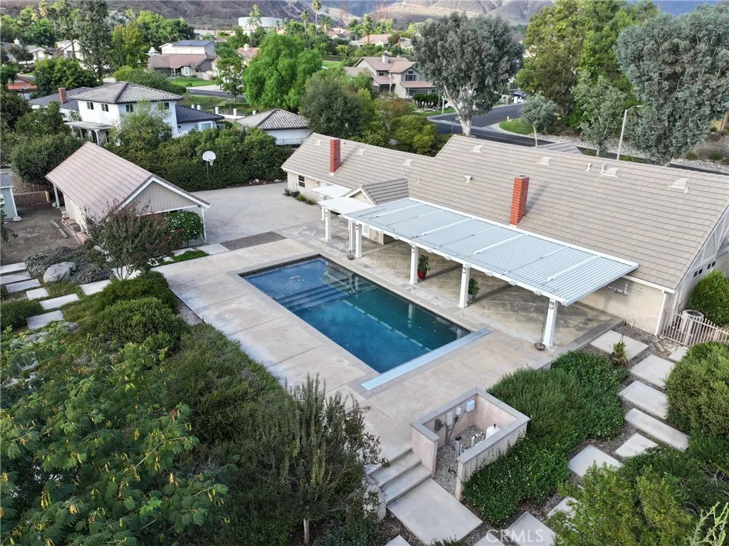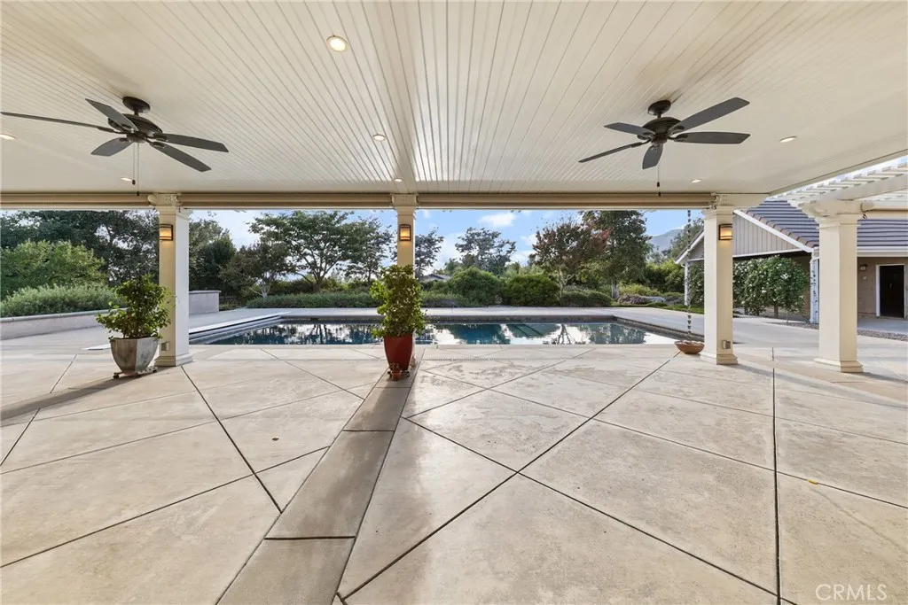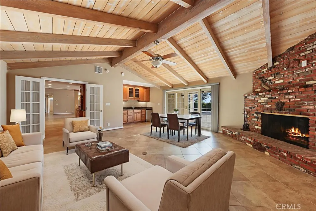 Experience the luxury & glamour of this unique single-story estate. Private San Antonio Heights retreat has a stunning view of the San Gabriel Mountains & sits on 40,400 sqft (.92 acre) spacious lot. Professionally landscaped estate front yard has drought tolerant native plants, a drip system, & curved Angelus paver walkways leading to the double door entry. Once inside, you will enjoy the open floor plan with a huge formal dining room to accommodate warm gatherings with a large used brick fireplace. Gourmet delight U shape kitchen features plenty of cabinetry, granite counter tops & subway tile, 12 ft breakfast bar, Rev A Shelf under counter dual waste basket system, stainless steel appliances, gas stove/range, dishwasher & newer Panasonic built-in microwave. Spacious kitchen opens up to a multi-use great living room. The north end of this estate is set up perfectly for mother-in-law/guest quarters with separate entry, another lovely used brick fireplace & wet bar with under cabinet refrigerator for a mini kitchenette area if needed. Features: approx. 3,077 sq.ft. of spacious living space, 5 bedrooms, 3 upgraded baths, designer paint, refinished smooth ceilings, vaulted ceilings, recessed lighting, custom base moldings & door casings, ceiling fans, 2 fireplaces & 2 wet bars, built-in desk off the kitchen, laundry room, 2 zones for A/C and heating, Milgard dual pane vinyl windows & sliders, Cat-5 network cable throughout the house, EagleLite concrete tile roof with warranty, three attic fans with thermostat control, Quiet Cool whole house fan & much more! Spacious primary b
