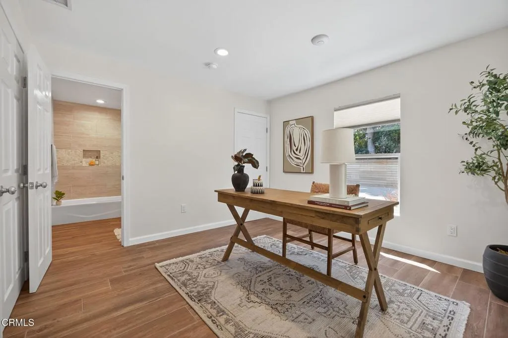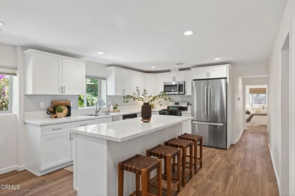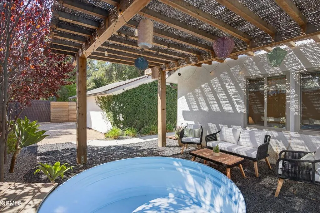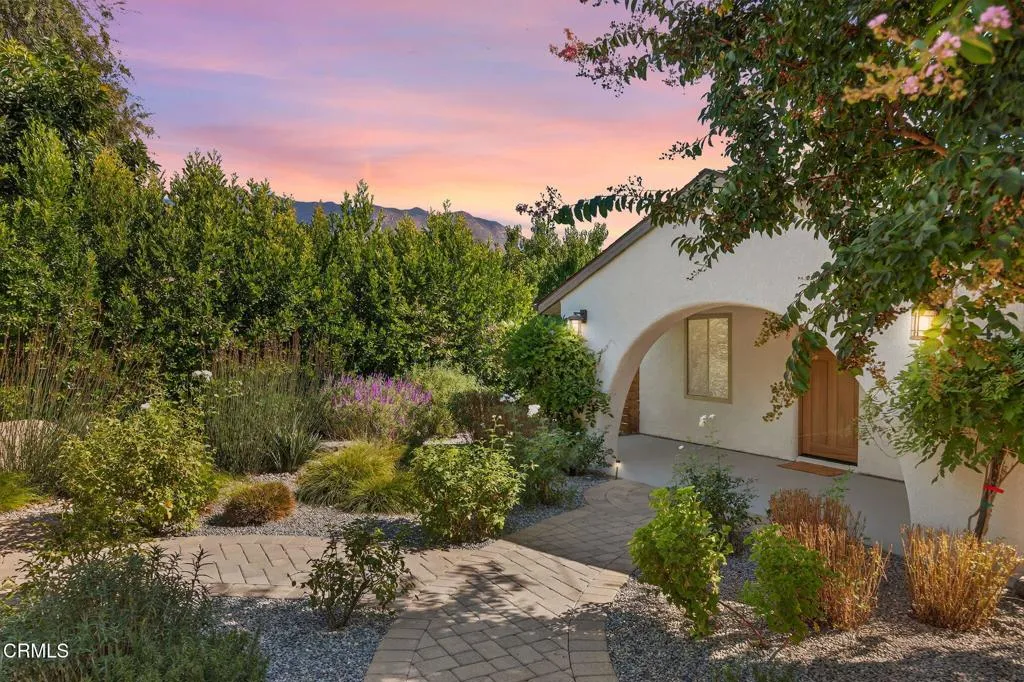 Welcome to your own private retreat tucked away in the vibrant community of Meiners Oaks! This beautifully remodeled, turn-key, 3 bedroom, 2 bath home blends modern comfort with Ojai charm, offering 1,456 sq. ft. of thoughtfully designed living space.Step inside to a bright, airy interior where dual-paned windows invite in natural light, beautifully complemented by recessed lighting in every room. At the heart of the home, the open-concept kitchen showcases sleek modern cabinetry, stainless steel appliances, and durable quartz countertops, anchored by a spacious island with abundant storage. Just off the kitchen, a well-appointed laundry room with custom cabinetry adds both style and convenience. The secluded primary suite is a true retreat, complete with an expansive walk-in style closet and an en-suite bath boasting a double vanity & generous shower with a full-width bench seat.The fully fenced property is a private sanctuary, offering plenty of usable space for entertaining or tranquil relaxation framed by vibrant crape myrtle trees and lush landscaping creating a sense of privacy and serenity. Unwind in Ojai's sunshine under the backyard pergola or take a dip in a unique Tipsy Tanks plunge pool--perfect for cooling off on warm afternoons. A solar-powered gated driveway provides secure parking for multiple vehicles, including RV parking for added flexibility. Notable upgrades include luxury System Pavers walkways and driveway, a security system, newer roof and HVAC system, ensuring convenience and peace of mind. Located just blocks away from gourmet restaurants, cafes, g