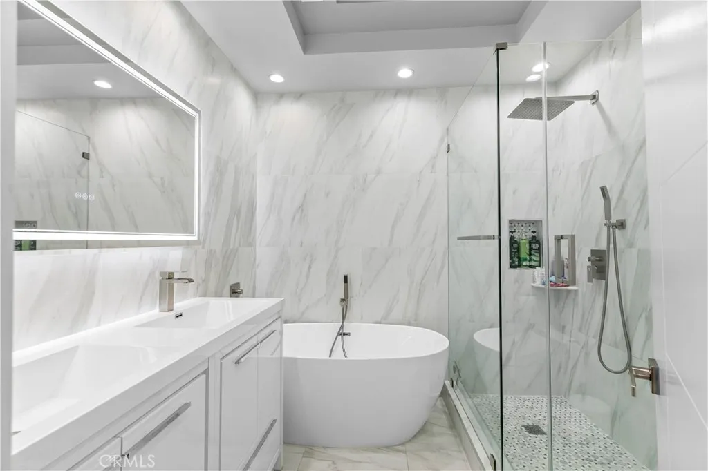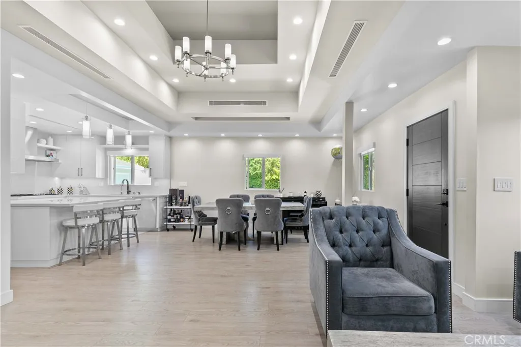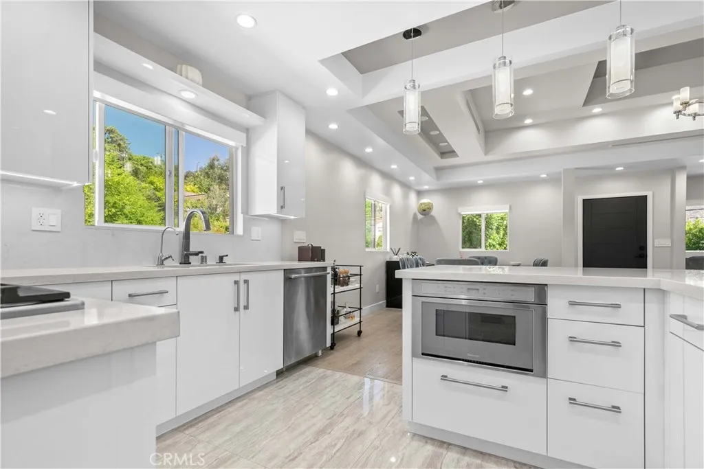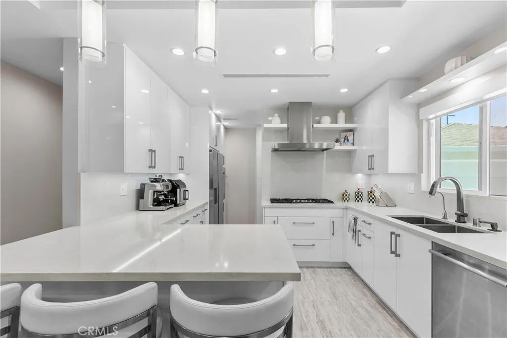 This beautifully fully remodeled 3-bedroom, 2-bath home combines modern design with everyday comfort. Step inside to an open-concept layout where the chefs kitchen flows seamlessly into the dining and living spaces. The kitchen features sleek white cabinetry, quartz countertops, a spacious island with bar seating, and contemporary pendant lightingideal for both entertaining and casual family meals. The dining area is framed by tray ceilings, recessed lighting, and large windows that fill the space with natural light, creating a bright and welcoming atmosphere. Elegant flooring runs throughout, complementing the homes clean lines and modern finishes. Good sized bedrooms, including a private primary suite, offer comfortable retreats with updated bathrooms featuring stylish tile work and fixtures. Junior ADU permits and drawings are available, it is approved and is ready for the new buyer to build. Located in a desirable neighborhood, this home is close to schools, shopping, dining, and freeway access, making it the perfect balance of convenience and style.