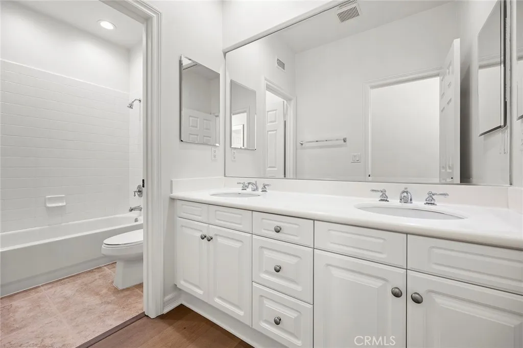 Welcome to 2556 Pearblossom, located within the distinguished gated community of The Aspens at Turnleaf. This residence features premium vinyl plank and tile flooring on the lower level, high ceilings, plantation shutters, recessed lighting, and numerous windows that provide abundant natural light. The property offers four bedrooms and three bathrooms, in addition to an upstairs bonus loft area equipped with a built-in desk. The primary suite is spacious and includes two separate walk-in closets. The en-suite bathroom is well-appointed with triple vanities, a sunken tub, a large separate shower, and a private toilet room. Upstairs, there are two additional bedrooms, a full bathroom with dual vanities, a combined shower and tub, a separate toilet room, and a designated laundry room with a sink. One downstairs bedroom is accompanied with a seperate bathroom with a walk-in shower. The kitchen is equipped with an island, granite countertops, custom backsplash, double ovens, and a microwave. Adjacent to the kitchen is a family room featuring a fireplace and an entertainment niche. The formal living and dining rooms are open and bright, benefiting from ample windows and elevated ceilings. Additional amenities include an attached two-car garage plus a separate one-car garage. The professionally landscaped backyard offers a built-in BBQ island for outdoor entertaining. Residents of the Turnleaf community enjoy access to an association pool, childrens play area, manicured green belts, and walking trails. The home is conveniently situated near the award-winning Beechwood Pre K-8 Scho