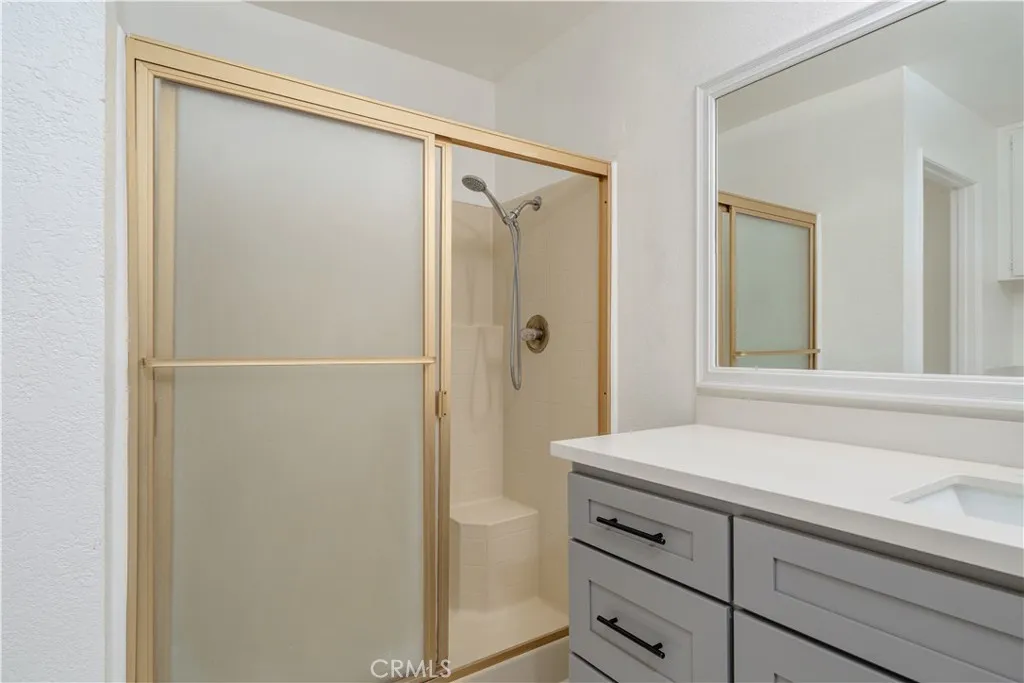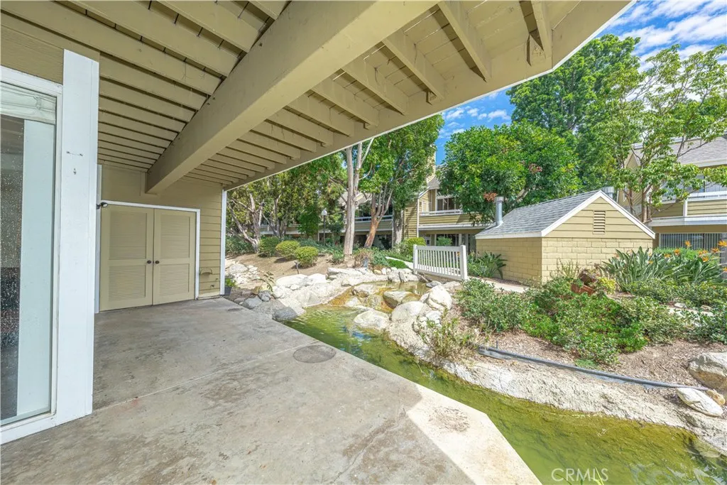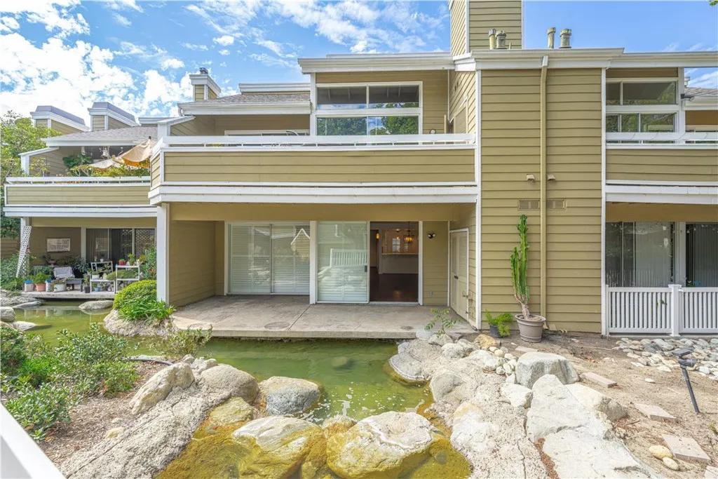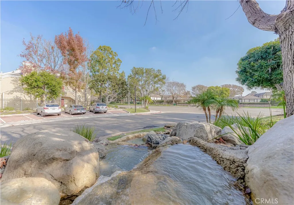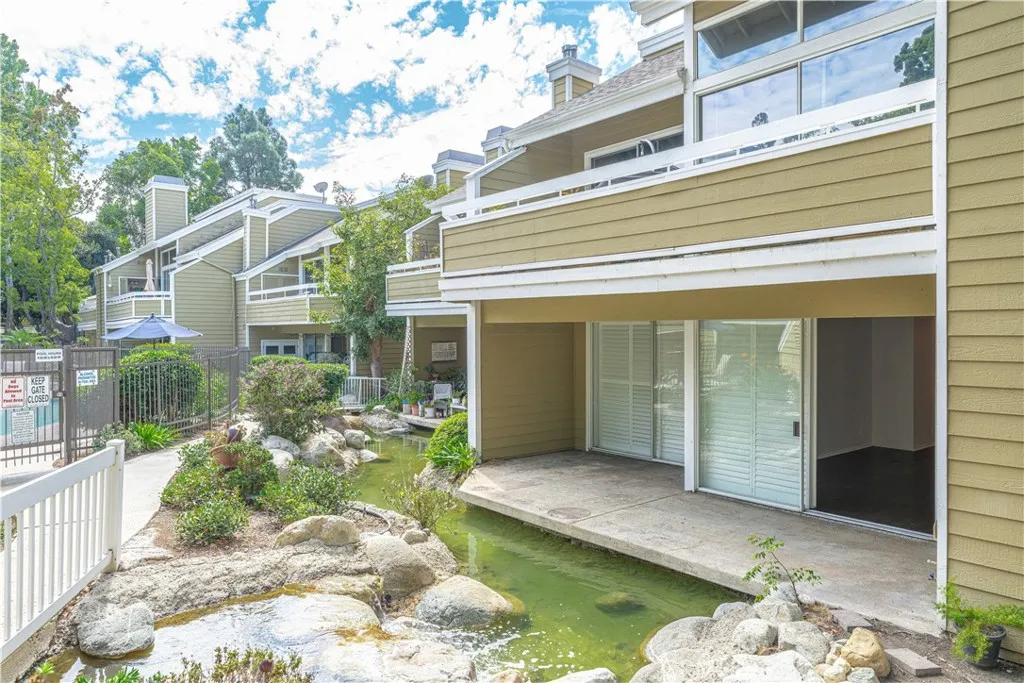 Welcome to this beautifully maintained 2-bedroom, 2-bathroom ground-level condo located in the serene, gated South Coast Springs Communityjust minutes from South Coast Plaza, The Camp, The Lab, Metro Pointe, and easy freeway access (405 & 55). Inside, a sun-filled living room greets you with a cozy fireplace, plantation shutters, fresh paint, and updated flooring. A large sliding glass door opens to your private waterfront patio, overlooking lush greenery and the peaceful community creek. The kitchen and dining area flow seamlessly from the living room, featuring tile counters, recessed lighting, a breakfast nook, and bar seating. The primary suite offers direct patio access, dual mirrored closets, and an en suite bathroom with a shower-in-tub and private water closet. The junior suite is just down the hall with a fully renovated bathroom showcasing a modern vanity, ceramic tile flooring, sleek black finishes, and extra linen storage. Unit has a one car garage and one assigned parking spot along with plenty of guest parking in the community.