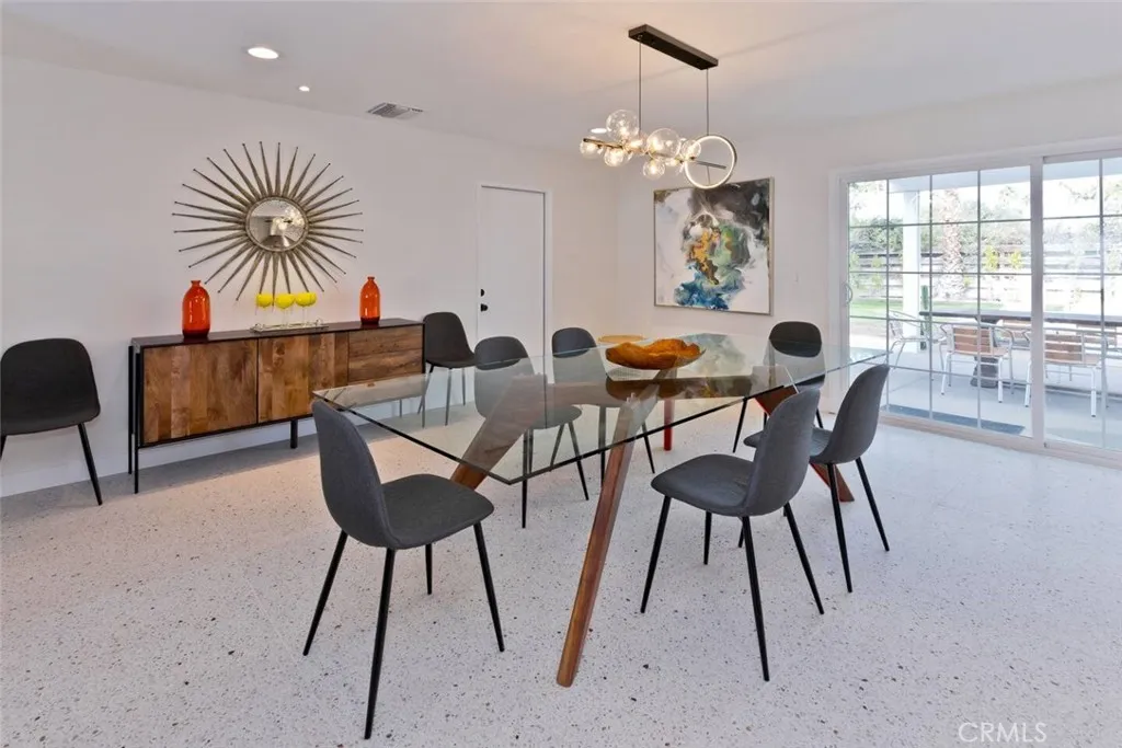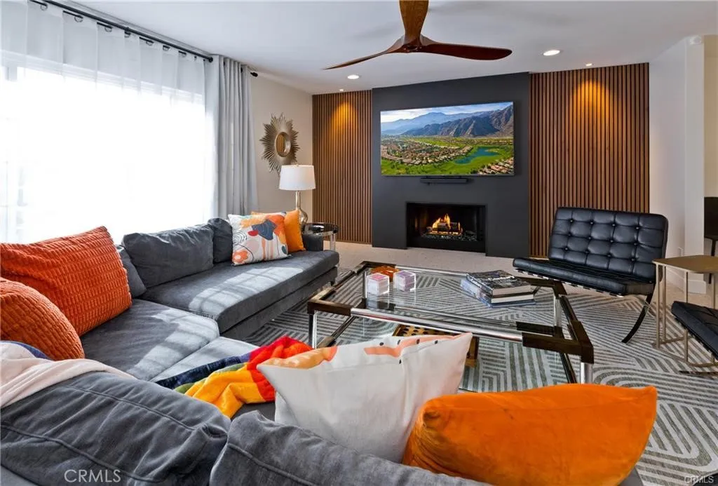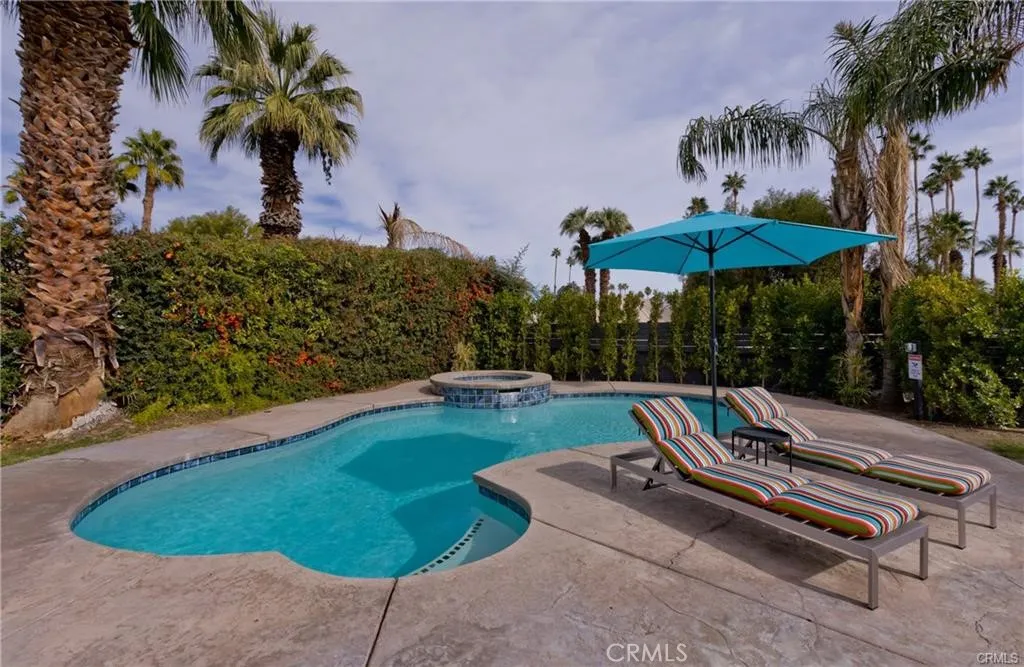 short term rental or Monthly! Welcome to Escoba Ranch, a fully remodeled and spacious three-bedroom home located just minutes from downtown Palm Springs and the Palm Springs International Airport with a massive private yard. Our large and private corner lot offers stunning views of the San Jacinto Mountains, accompanied by a salt water pool and jacuzzi, a 45-foot covered patio, a citrus orchard, a fire pit lounge, an outdoor shower, dual garage (with AV charger) all surrounded by a variety of palm trees, cacti, and desert flowers. Interior Highlights: This home is fully furnished! The open floor plan living and dining area features a 75-inch TV, a cozy fireplace, and an extra-large dining room that opens to the outdoor living area. The well-appointed kitchen is equipped with all the amenities needed to entertain and enjoy your stay in Palm Springs. Location Situated in the Los Compadres neighborhood of southeast Palm Springswell south of the wind zoneRancho Vista Del Sol provides quick access to the city's vibrant heart, including its restaurants, museums, shops, and galleries. We are conveniently located on the new Palm Springs CV Link (Coachella Valley bike path) and are just minutes away from the Prescott Nature Preserve, dog parks, and the Araby trail system, which leads to the famous Bob Hope House and beyond. Primary Suite: The luxurious primary bedroom serves as a private oasis, featuring a plush king-size bed with a beautiful wood headboard. A large sliding glass door allows natural light to illuminate the rich terrazzo floors and sleek mid-century modern furnishing