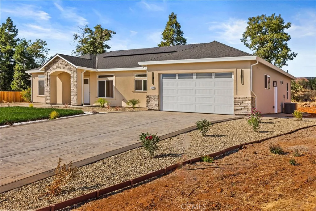 Welcome to the home in the location you've been waiting for! Tucked back on a quiet cul-de-sac of conforming homes with OWNED SOLAR, this home is sure to impress. Through the double front doors, you are greeted into the foyer which includes a coat closet to the left, and formal dining area to the right, then leads you into the open and airy living area. The living area features a vaulted ceiling, modern ceiling fan, a cozy electric fireplace with floor to ceiling stone detail, and a large slider leading to the low-maintenance backyard. The gourmet kitchen features quartz countertops with a waterfall island, LG stainless steel appliances, a gas cooktop, walk-in pantry, and farmhouse sink. This sought after split floor plan, provides a private primary suite that contains a walk-in closet, and attached bathroom that includes a dual sink vanity, soaking tub, and step-in shower. On the same end of the home is a half bathroom, and large laundry room with tons of cabinet and counter space. At the other end of the home are the 2 guest bedrooms, and guest bathroom. Additional features include a whole house fan, 2 car garage, exterior stamped concrete and so much more!