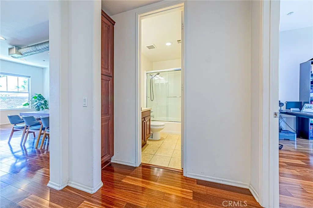 Discover this exceptional Two Story Townhome- condo in SOCO Walk in the heart of Fullerton! This unique and spacious unit offers 3 Bedrooms and 3 Bathrooms across approximately 1,780 square feet. Either you walk-in through the side-by-side garage or the main entrance, the entry level offers a private, great size Full Bedroom, ensuite Bath ideal for multigenerational living, guests, or a private office setup. Upstairs youll find an Upgraded kitchen with complete granite countertops, stainless steel appliances, walk in pantry and elegant cabinetry. The Primary suite offers luxurious ensuite bathroom with dual sinks and a large walk-in shower along with side by side double closets. The last Bedroom offers access to a balcony with its own great size private bathroom as well. The dining and living area is filled with natural light, upgraded hardwood flooring, perfect for relaxing and enjoying the sky view! EV charger inside the Garage. This unit is situated just steps away from the Metrolink, Downtown Fullerton, Soco District, Trendy shops and restaurants, Entertainment, Cal State Fullerton, St. Jude and Freeways! Dont miss out on this rare opportunity to own a piece of downtown Fullerton!