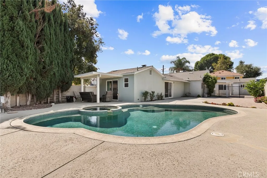 Beautiful Winnetka Pool Home on a Corner Lot. Welcome home to this charming single-story pool home situated on a desirable corner lot in Winnetka. Featuring 3 bedrooms, 2 bathrooms, and 1,316 sq. ft. of living space, this property blends comfort and style with a fantastic indoor-outdoor flow. The spacious living room offers abundant natural light, a cozy stone fireplace, laminate flooring, and a large sliding glass door that opens to the backyard. The remodeled kitchen showcases rich cherry wood cabinetry and stainless steel appliances, perfect for everyday cooking and entertaining. The layout includes two secondary bedrooms with a full hall bath on one side of the home, while the private primary suite with its own bathroom is set on the other. Step outside to your personal retreata sparkling Pebble Tec pool and spa, surrounded by hardscaping, planters, and plenty of space for relaxing or hosting gatherings. Additional highlights include a large driveway and a one-car garage. This move-in ready home is the perfect mix of comfort, style, and outdoor enjoyment. Dont miss your chance. Come see it today!!