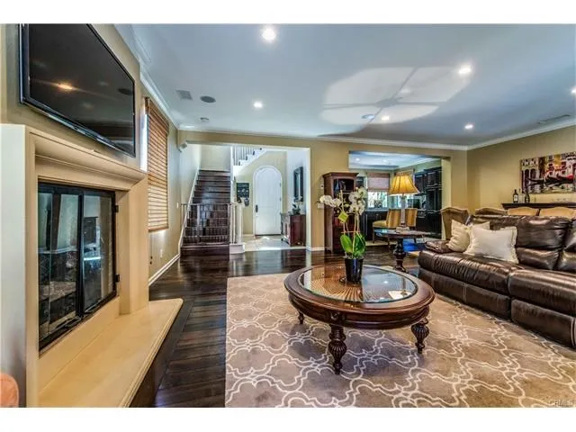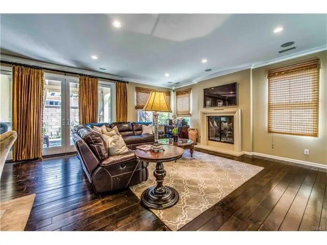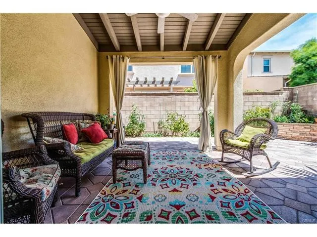ONLY STEPS TO JEFFREY OPEN SPACE TRAIL! BROOKFIELD HOMES RESIDENCE 2 LOCATED IN A PRIVATE CUL-DE-SAC FEATURES 4 BEDROOMS, 3 BATHS, 2-CAR ATTACHED GARAGE WITH DRIVEWAY! OPEN FLOOR CONCEPT GORGEOUS SFR EXQUISITELY WITH RICHARD MARSHALL WALNUT FLOORING, ETHAN ALLEN SILK DRAPERY, PLANTATION SHUTTERS, BAMBOO BLINDS, BUILT-IN SURROUND SOUND SYSTEM, SECURITY HOME ALARM, TANKLESS WATER HEATER. DESIRED DOWNSTAIRS BEDROOM WITH A FULL BATH. THE GOURMET KITCHEN EQUIPPED WITH UPGRADED DARK WOOD CABINETS, SS APPLIANCES, CONVECTION MICROWAVE, GAS COOK TOP, CENTER ISLAND AND GRANITE COUNTERS WITH FULL BACKSPLASH. ENJOY YOUR CANDLE LIGHT DINNER IN THE DINNING AREA OR CALIFORNIA ROOM. LOTS OF CABINETS IN THE UPSTAIRS LAUNDRY ROOM. UPSTAIRS UPDATED WITH PINE WOOD FLOOR A YEAR AGO. MASTER BATHROOM FEATURES HIS AND HER WALK-IN CLOSETS, SEPARATE GLASS DOOR SHOWER AND BATH TUB, 2 INDIVIDUAL VANITIES, EACH WITH OWN MEDICINE CABINET AND WOOD FRAMED MIRROR COVERED BY LIME STONE COUNTER TOP INLAY WITH SHELL AND MOSAIC BACKSPLASH. MIRROR WARDROBE IN 2 SECONDARY BEDROOMS. WOODBURY OFFERS 16 PARKS, 7 SWIMMING POOLS, AND IS CENTERED AROUND THE COMMONS. TOWN CENTER OFFERS MARKETS, BANK, GAS STATION, RESTAURANTS, MANY RETAIL STORES, AND THE DESIRED IRVINE UNIFIED SCHOOL DISTRICT.