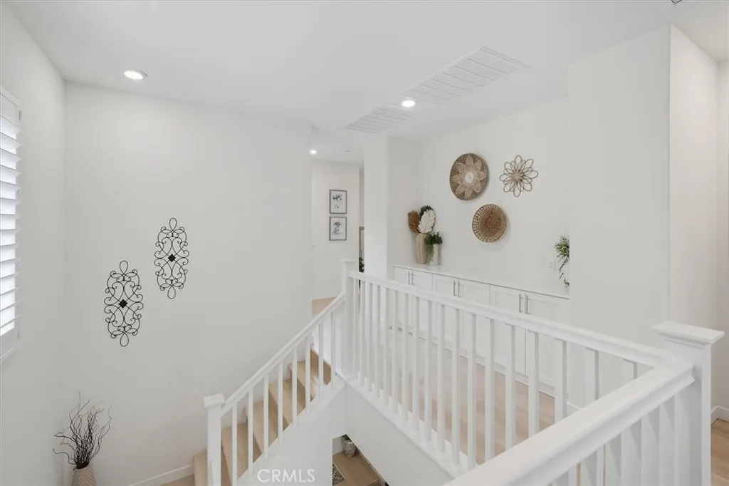 This stunning 2022 built home shows like a model and offers 2,376 sq.ft of beautifully upgraded living space with 3 bedrooms, 2.5 bathrooms. With $120,000 in upgrades, the home features an open concept design and a spacious California Room perfect for indoor-outdoor living. The gourmet kitchen is a true center piece with a large center island and breakfast bar, Quartz countertops in the kitchen, upgraded cabinets with soft self-closing cabinets and cabinets have been upgraded to stack to the ceiling. Premium Wolf appliances, including a gas oven, microwave, Cove dishwasher, Best hood range, making it both stylish and highly functional. Throughout the home you'll find LVP flooring on both levels of the home with no carpet in any room, plus California shutters. The master bedroom walk-in closet has been upgraded to upper racks and lower racks to itemize the space. Bathroom has marble counter tops; The garage has an epoxy stone chip finish with added custom cabinets for extra storage. The backyard is designed for zero maintenance with hardscape, plants, and string lights that create a warm, inviting atmosphere. This home is also loaded with smart features including Solar monitoring, a ring doorbell, MyQ garage system, smart thermostat with dual-zone control for upstairs and downstairs, smart sprinkler system, and paid solar system that you own -- providing energy savings and peace of mind. Best of all, there are no Mello-roos! This home is centrally located in Santa Clarita with easy access to the 14 Freeway, making it a perfect combination of style, comfort and convenance. Do