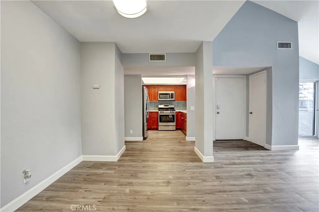 Welcome to this beautifully updated 2 bedroom 1 1/2 bathroom townhome offering stylish comfort. The home boasts an open-concept living and dining area, complemented by laminate flooring, a cozy fireplace, high ceilings, and a glass sliding door leading to the front patio. The renovated modern kitchen is equipped with stainless steel appliances, quartz countertops, and custom cabinetry. Upstairs, you'll find two spacious bedrooms with ample closet space, the main bedroom has a walk in closet, both bedrooms open to a large balcony offering views of the mountains. In unit laundry closet. Detached two car garage. The community is gated and includes a sparkling pool and spa, recreation room, lush landscaping, and guest parking. The home is centrally located in the heart of the San Fernando Valley, close to shopping, restaurants, transportation, and schools.
