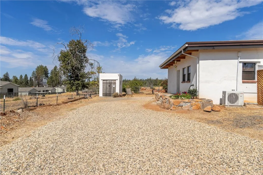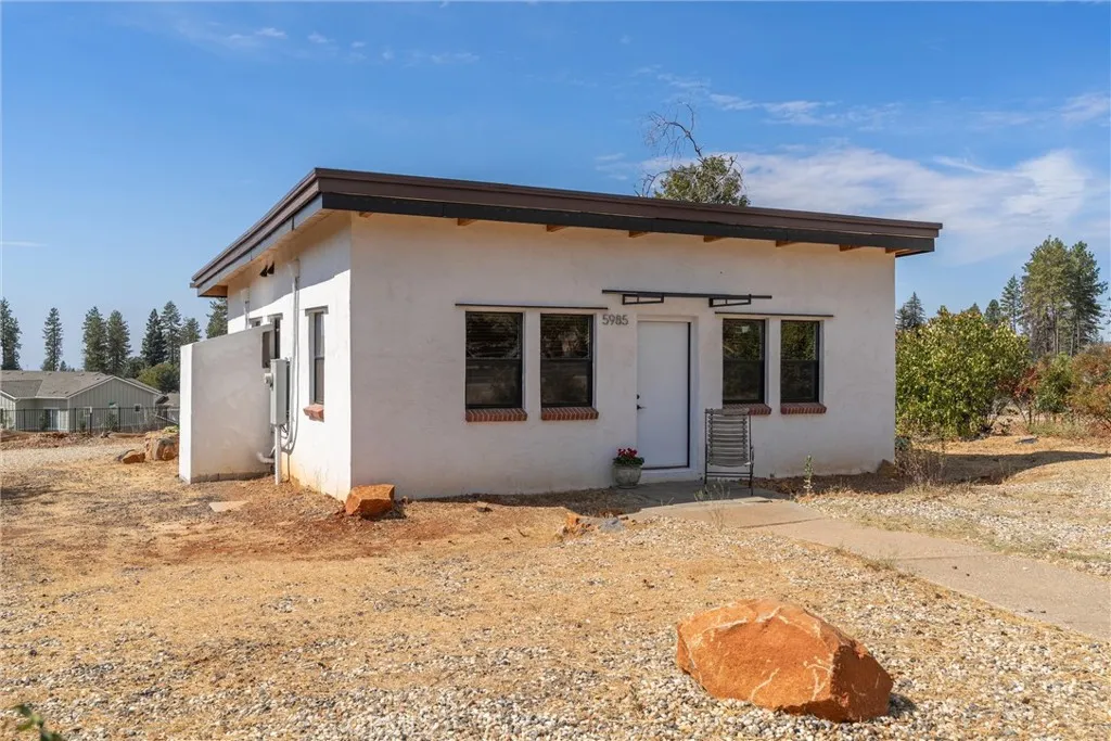 Modern Mediterranean Retreat in Downtown Paradise. 1 Bed | 2 Bath | 800 Sq Ft | 0.17 Acre Lot | Built in 2023. Discover this thoughtfully designed Mediterranean-style home nestled in the heart of Paradise. Built in 2023 with fire safety and energy efficiency in mind, this 1-bedroom, 2-bath retreat offers a unique blend of style, sustainability, and convenience. Key Features: Concrete block construction with added insulation for enhanced quiet and thermal performance; Colorized concrete flooring for durability and modern flair; Tongue-and-groove pine ceilings with exposed wood beams for warmth and character; Stylish glass fixtures throughout the home; Stainless counter and sink for ease and style; Stucco exterior finish for a clean Mediterranean look; Energy-efficient systems including a heat pump water heater and mini-split HVAC; Partially fenced yard with room to personalize or expand; Ample street parking for guests; Close proximity to local amenities, including tennis courts and a trackperfect for active lifestyles. Previously used as a rental, the seller is ready to move on to their next project. Whether you're looking to downsize, invest, or enjoy a peaceful retreat, this property offers a rare opportunity to own a modern, fire-conscious home in a vibrant community.