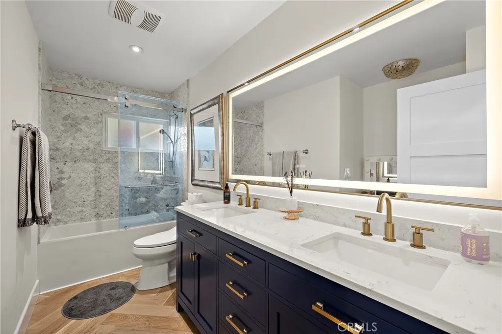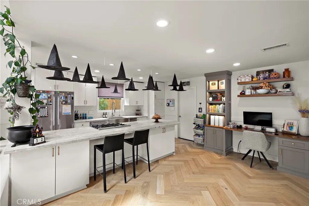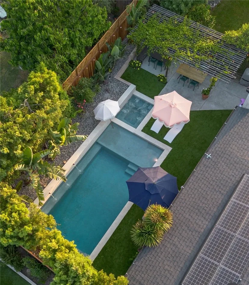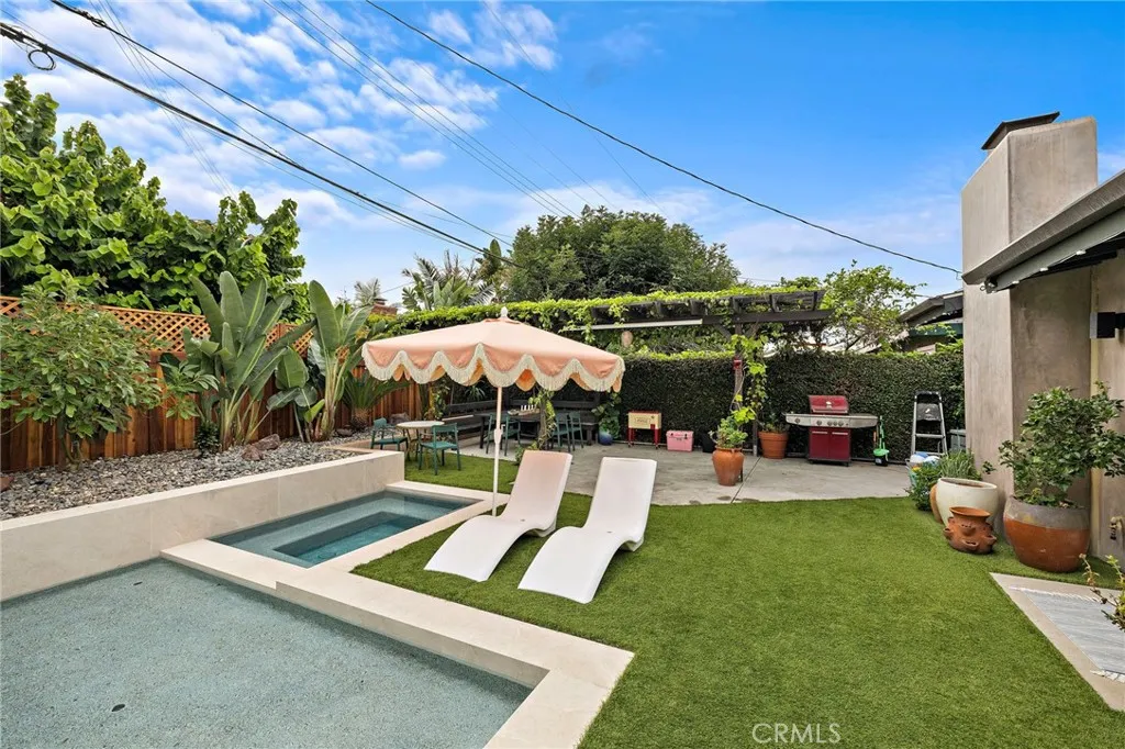 Newly reimagined and move-in ready, this 3-bedroom, 2-bathroom Mesa Verde gem blends modern updates with timeless warmth. Step inside to be greeted by herringbone-pattern engineered hardwood floors, a custom built-in office nook, and open concept living area with plenty of natural light. The remodeled kitchen showcases shaker cabinets, a new ice maker, and upgraded fixtures, while both bathrooms feature added vanities and dual sinks. Every detail has been thoughtfully curated, from the whole-house water softener and reverse osmosis system, paid off solar, to the EV charging station, rain gutters, and upgraded lighting for day and night ambiance. The private backyard is a true tropical oasisfeaturing a brand-new saltwater pool and spa by OC Poolscapes, lush banana trees, avocado trees, and passionfruit vines climbing the pergola. With new turf, BBQ area, and plenty of space for al fresco dining and entertaining, this home is designed for California living at its finest. Additional highlights include a new fence, 2-car garage, ample street parking, gated entrance for utmost privacy, and an ideal location close to Mesa Verdes beloved parks, top-rated schools, and a wide array of restaurants, shops, and coastal amenities just minutes away. Lovingly maintained and upgraded by the sellers, this turnkey residence is ready to welcome its new owners.