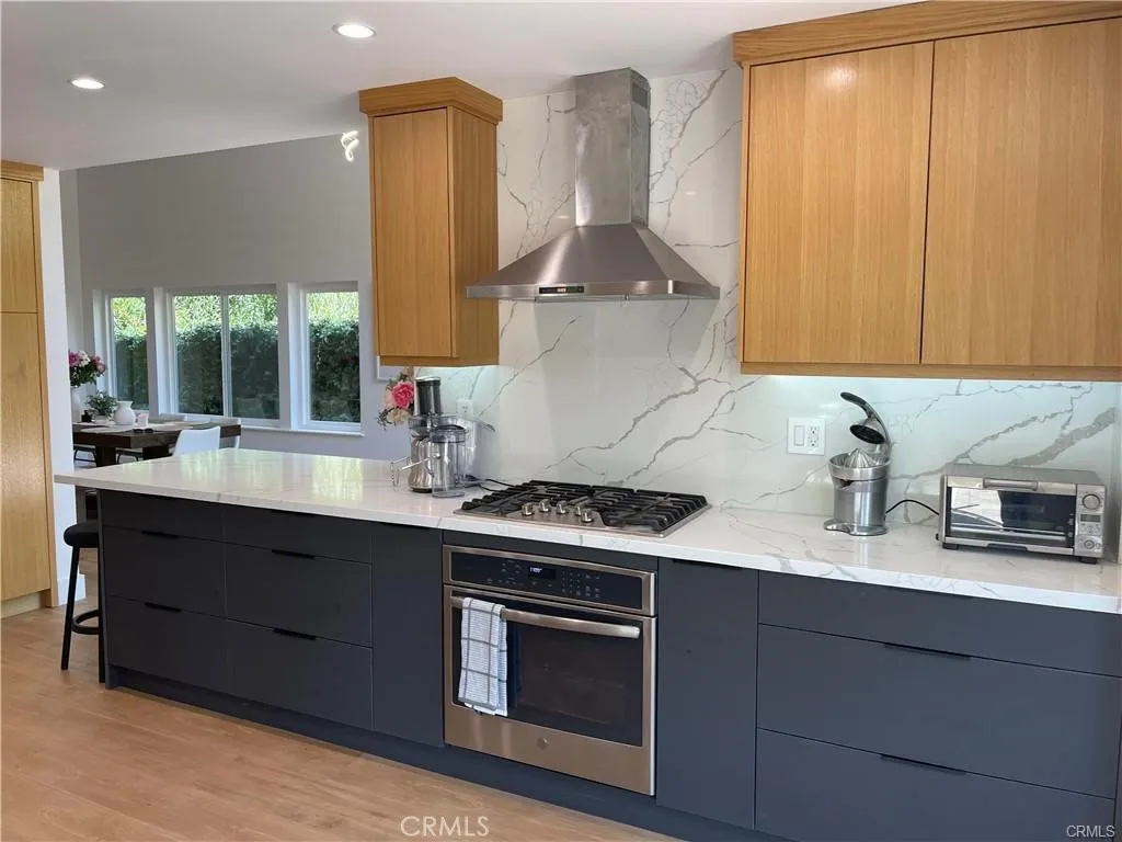 Welcome to this fully remodeled 5 bedroom, 3 bathroom home in the prestigious gated community of Calabasas Hills. Nearly 2,600 sq ft of living space includes a main-level guest room and full bath, elegant wine display, multiple spacious living areas with a fireplace, and a chefs kitchen with stainless steel appliances, granite counters, and a large center island. Upstairs offers four bedrooms including a luxurious primary suite with a custom walk-in closet, plus custom closets in every room. The backyard is ideal for entertaining with a covered stone patio, built-in barbecue, and lounge areas, while the community provides two 24-hour guarded entrances, pools, spas, playgrounds, and direct access to award-winning Bay Laurel Elementary. Just minutes from The Commons, shopping, dining, and parks, this home perfectly blends modern upgrades with the best of Calabasas living.