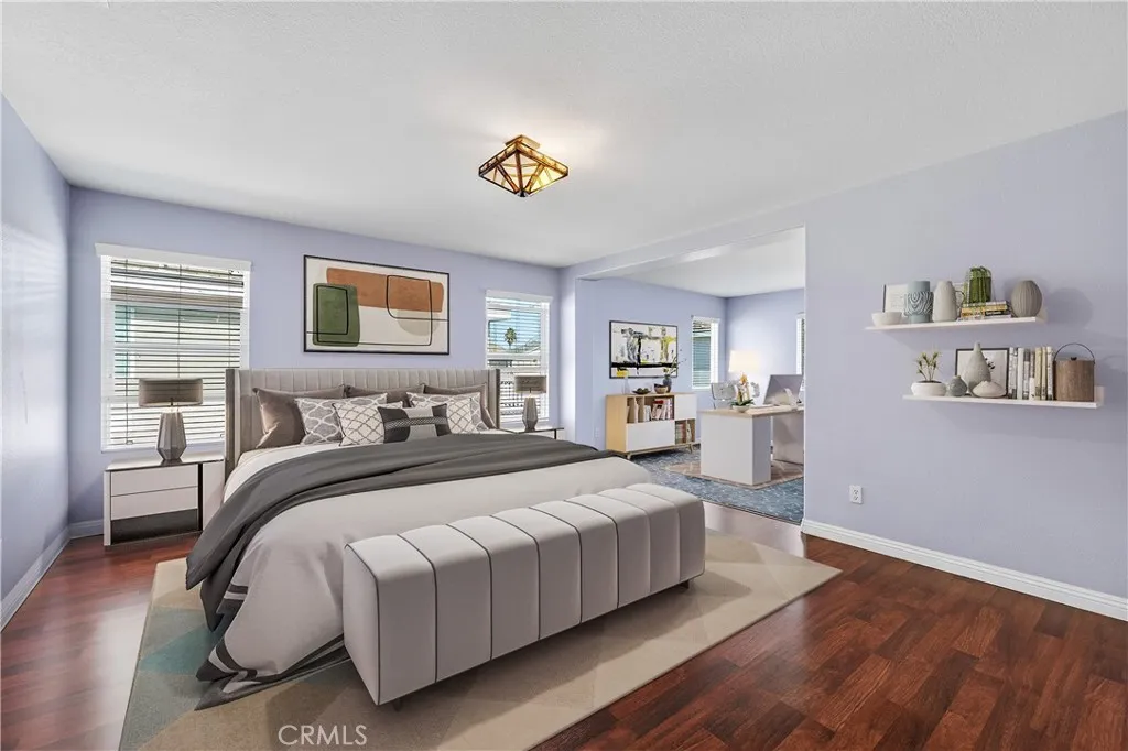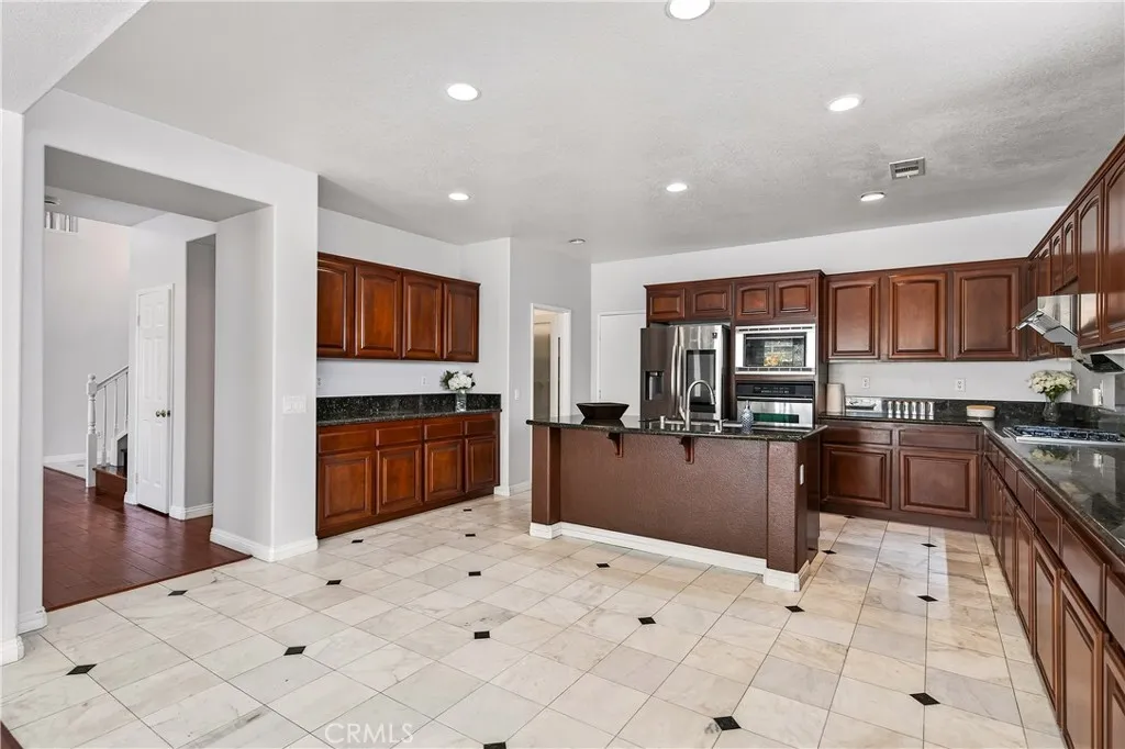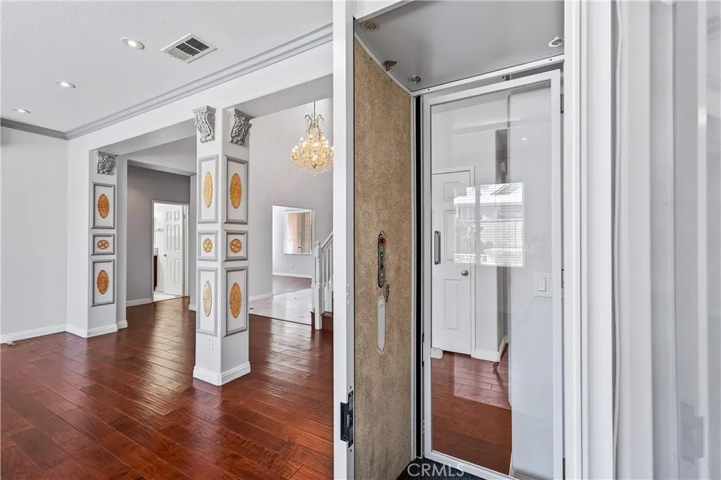 Nestled in one of Eastvales most desirable neighborhoods, this stunning 5-beds, 4-baths home with an office and a giant loft combines modern luxury with timeless elegance. From the moment you arrive, youll be impressed by this homes stunning curb appeal. Natural stone-accented steps, framed by gracefully curved walls, create a grand approach to the entry. A spacious, fully finished front patio, manicured landscaping, and an elegant double-door entry set the perfect tone for the refined living that awaits inside. Step into a grand foyer with soaring ceilings, a dazzling chandelier, and a beautifully appointed formal living and dining area accented with Roman style columns. Rare German Stiltz home lift adds unmatched convenience. The open-concept gourmet kitchen features granite countertops, stainless steel appliances, a walk-in pantry, and a center island, flowing seamlessly into the cozy family room with fireplace and a sunny breakfast nook. A first-floor bedroom with a full bath is ideal for guests or in-laws, complemented by a powder room and a versatile bonus room that can serve as a home office, a gym, a game room or an enclosed bedroom. Upstairs, a spacious loft provides the perfect space for entertainment or relaxation. The luxurious master suite boasts a private retreat area, dual walk-in closets, double sinks, a walk-in shower and a tub with jacuzzi spa. Three additional bedrooms with one having direct access to the bathroom are generously sized and filled with natural light. A convenient upstairs laundry room completes the second level. Enjoy the best of California