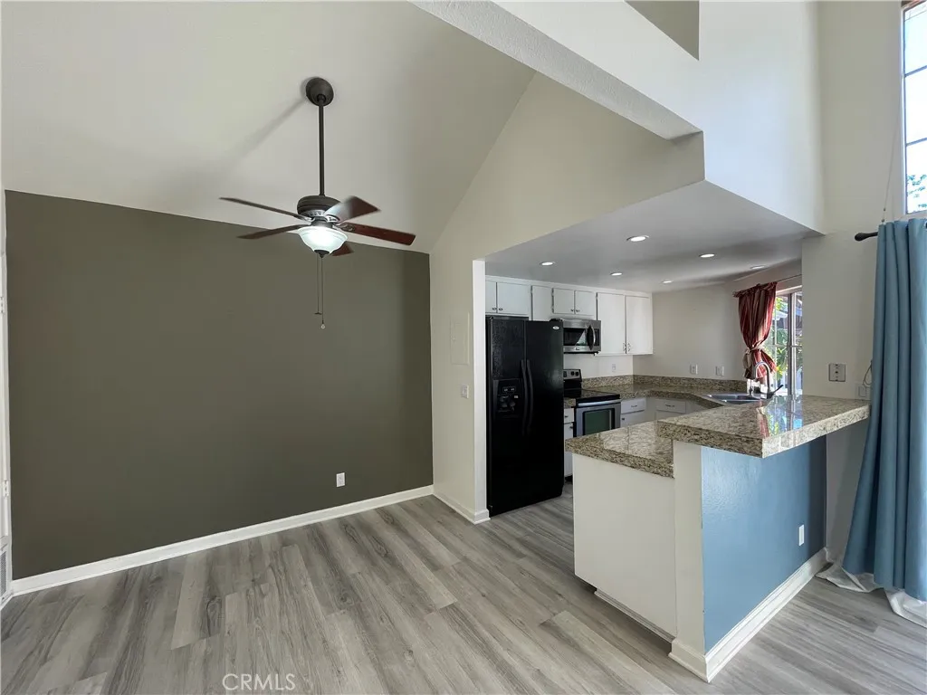 Gorgeous 1bdrm/1ba upstairs condo featuring vaulted ceilings and abundant natural light! This open-concept floor plan offers a modern kitchen with granite countertops, stainless steel appliances, and vinyl flooring throughout. Enjoy peaceful views overlooking the community stream and relax on your private balcony complete with washer/dryer. Includes a 2-car detached garage and access to a sparkling community pool in this gated community.