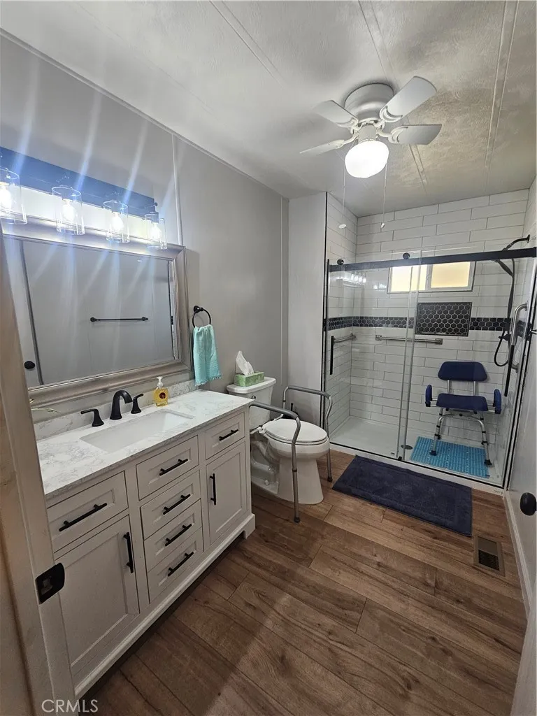 What's New? EVERYTHING!! within one year to now! Newly installed $8000.00 REMODELED HANDICAPPED Walk-In Shower in Primary Bathroom, including NEW fixtures, commode, sink & vanity cabinets; NEW commode in 2nd Guest Bathroom, NEW paint & NEW Laminate flooring throughout, NEW kitchen sink, faucets & lighting with TWO Pantries and a circular BREAKFAST BAR; NEW Blinds for the many windows; In a separate room is the laundry area with NEW washer & Dryer less than one year old, counters and storage, could be used as an office too! NEW ROOF 2021, Plus Wall to Wall Closet in H-U-G-E Primary Bedroom. THIS HOME BOASTS OF "NO HALLWAYS", perfect for handicapped accessibility. Light & Bright, INCREDIBLE AMOUNT OF STORAGE throughout this gorgeous home too! So much more to say.....with the low profile entrance, no steps, the full length covered side patio with privacy panels, room for gardening or ? in the back of the home. Orange Grove is the Best & Finest All Age Communities in prestigious Redlands, offering a serene, quite atmosphere for their residents. Lots to do and participate in when the Community Rec Hall doors open for POTLUCKS, BINGO NIGHT, SOCIALS, COFFEE KLATCH, POOL/BILLIARD TABLES & GYM/EXERCISE RM too. Enjoy the outdoor pool & jacuzzi, family BBQ & Picnic area and all of the wonderful residents that call Orange Grove Mobile Estates home! (Ser#A/B5468) Did I mention RV Parking is available for only $40.00??? Make that phone call today and let's get you Pre-Qualified. Lot rent for this home is only $939.72. WOW!