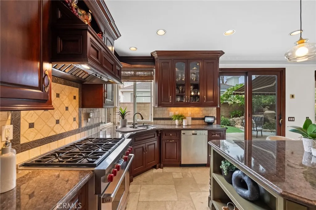 Welcome to 48 Parkcrest, a beautifully updated five-bedroom residence tucked inside the highly coveted, guard-gated Bainbridge community of Northwood in Irvine. With only 91 homes and low turnover, Bainbridge offers an intimate neighborhood setting that perfectly balances privacy, charm, and convenience. From the moment you arrive, the curb appeal is undeniablemanicured landscaping, mature trees, and a welcoming front porch set the stage for whats inside. Step through the front door and discover a bright, thoughtfully designed floor plan where classic architectural details blend seamlessly with modern upgrades. The formal living and dining rooms create an elegant space for entertaining, with large windows and French doors filling the home with natural light. At the heart of the home is a remodeled kitchen featuring rich cherry cabinetry, granite countertops, high-end stainless steel appliances, and a charming garden window overlooking the lush backyard. The adjacent family room, offers a brick fireplace and impressive built ins, and flows directly outdoorsan ideal setup for Southern Californias indoor-outdoor lifestyle. Upstairs, the oversized primary suite offers a peaceful retreat with dual vanities, a spacious walk-in closet, and a separate tub and shower. Four additional bedrooms complete the second level, including one with its own ensuite bath, making the home ideal for guests or multi-generational living. Step outside to your private backyard oasis, designed for year-round enjoyment with a sparkling spa, built-in BBQ, multiple seating areas, and mature landscapingper