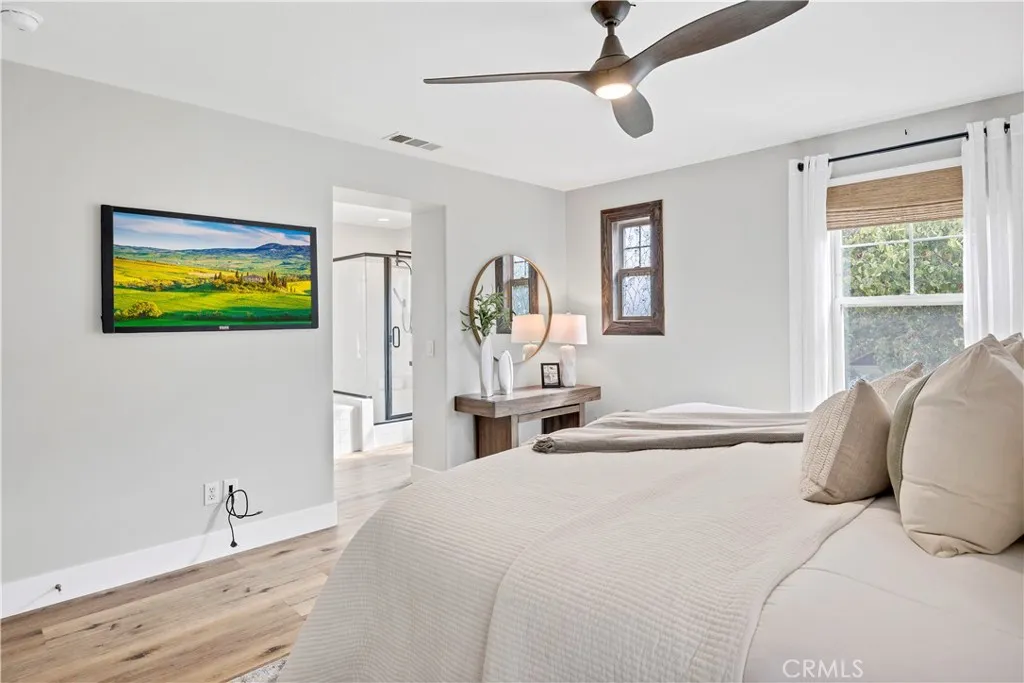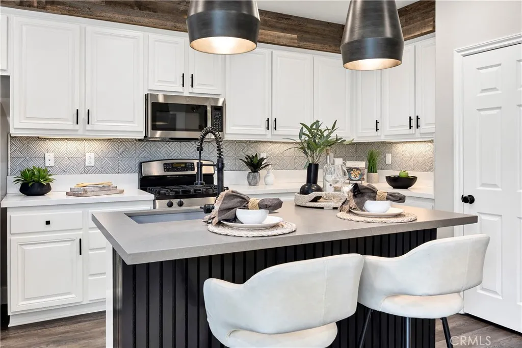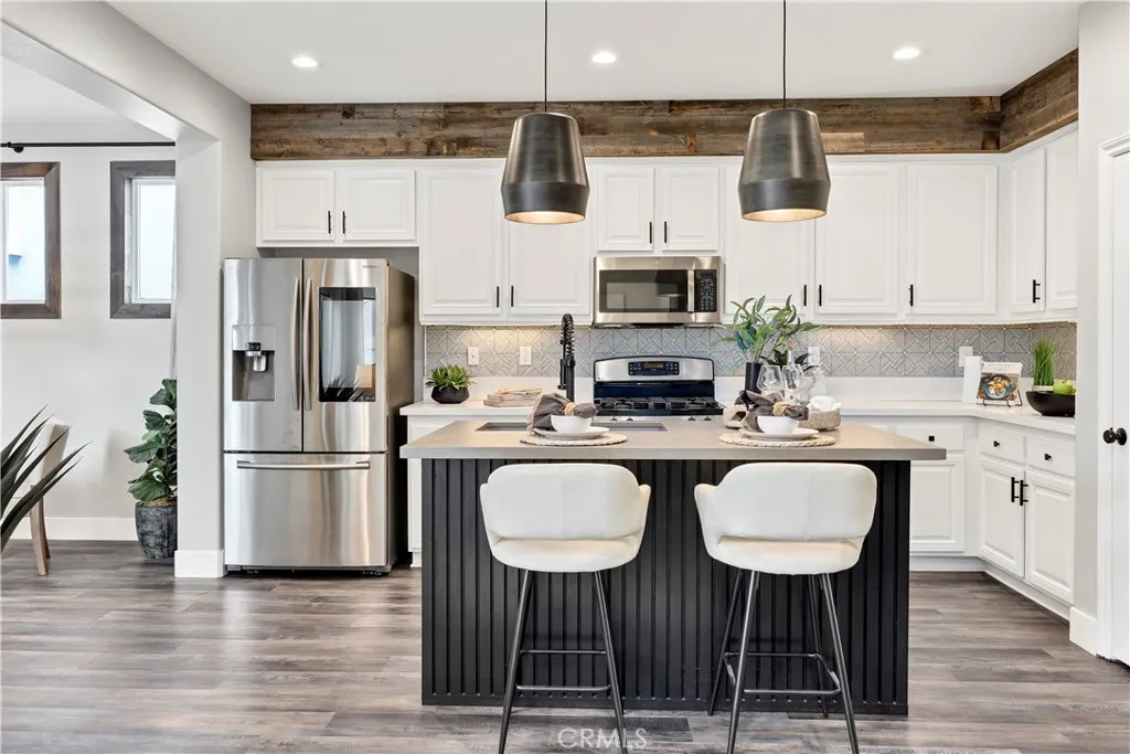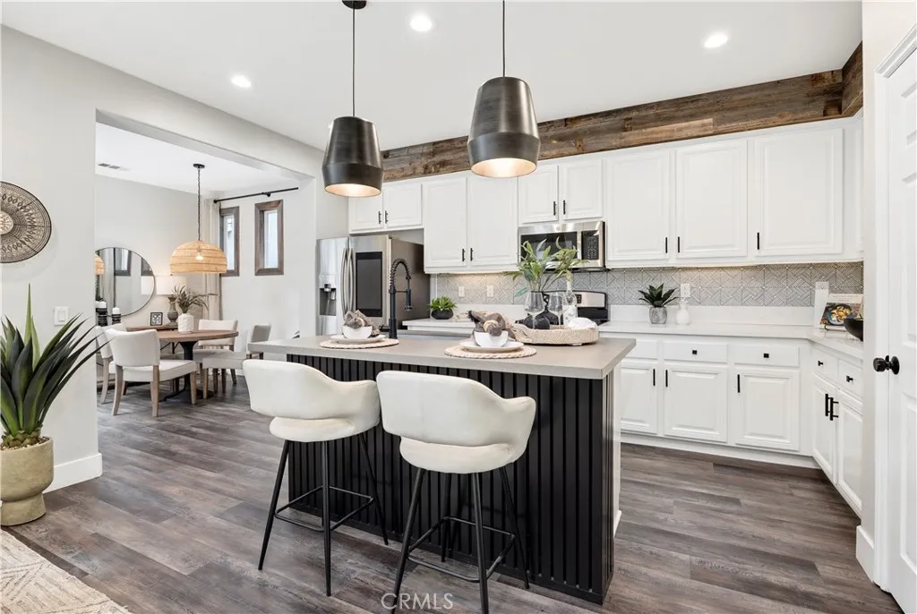 Experience the best of lakeside living in this beautifully remodeled home with unobstructed views of Harveston Lake. Situated in one of the communitys most sought-after locations, this rare offering combines lifestyle, charm, and modern upgrades. Step inside to find an inviting floor plan featuring LVP flooring, custom wood paneling, stylish light fixtures, and a versatile downstairs office with door. The formal living and dining rooms set the stage for gatherings, while the family room impresses with a custom fireplace and built-in bar, seamlessly connected to the kitchen. The updated kitchen is a chefs delight with quartz countertops, white shaker cabinets, stainless steel appliances, and a cozy breakfast nook that leads to the laundry room and attached 2-car garage. A side patio offers ample space for entertaining, complemented by a charming front patio perfect for enjoying sunsets over the lake. Upstairs, youll find four spacious bedrooms, including a luxurious primary suite with a walk-in closet, dual sinks, soaking tub, and separate shower. Harveston is one of Temecula's most desirable communities, favored by so many for the amenities, olympic sized community pool and splash pad, sports parks, easy commuting, shopping, Ysabel Barnett Elementary and Chaparral High School, and of course the LAKE activities! Close to wine country, Promenade Mall, Old Town Temecula, and the 15 Freeway, come and see why Harveston is at the top of the list for buyers looking for communities to live in Temecula!
