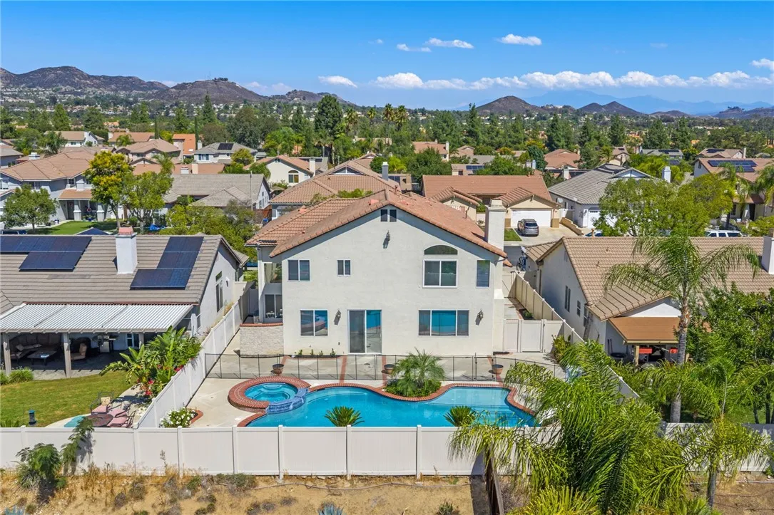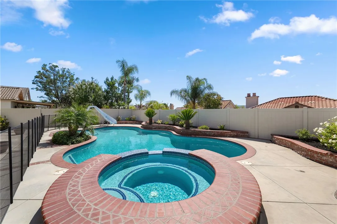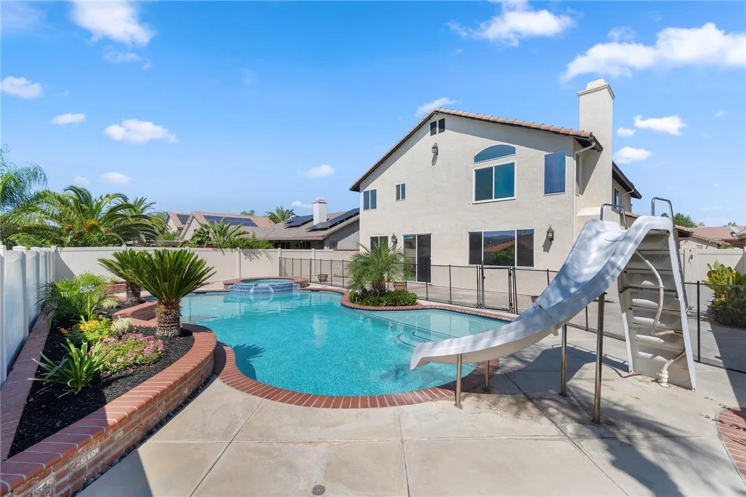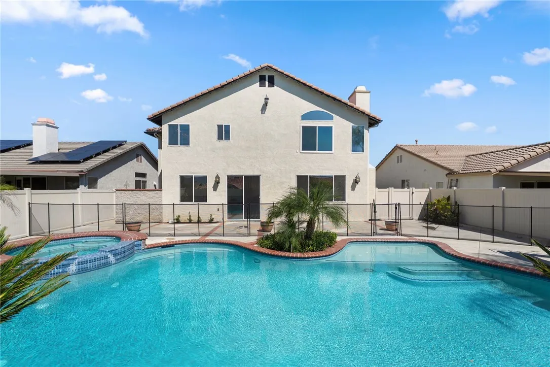 Stunning Turnkey Home with Media Room & Pool! Welcome to this beautifully renovated 5-bedroom, 2.75-bathroom home with 3-car garage offering 2,780 sq. ft. of modern living space on a spacious 7,141 sq. ft. lot. Every detail has been thoughtfully updated, making this home truly move-in ready. Step inside to find fresh paint throughout, brand-new carpet upstairs, and luxury vinyl plank flooring downstairs. The upgraded kitchen boasts quartz countertops, a nice island, a 5-burner gas cooktop, a double self-cleaning electric oven, and a space designed for a large 48" wide, cabinet depth refrigerator (Sub-Zero style, GE Monogram style). The open-concept family room features a custom brick covered 36" fireplace and built-in entertainment cabinetry wired for surround sound, perfect for gatherings. Upstairs, the media room comes complete with a raised platform for theater-style seating and custom cabinetry also wired for surround sound ideal for movie nights and game days. Crown molding, upgraded lighting, and ceiling fans in every room. Retreat to the backyard oasis where you'll find a sparkling pool with water features, including a large sun shelf with bubbler fountains and an oversized spa. There is removable child safety fencing and beautiful landscaping. This 2-story home is surrounded by one-story homes which offers excellent privacy, not to mention its curb appeal, and awesome views from all upstairs windows. Vinyl perimeter fencing also helps with privacy and has locking gates on both sides of the house and includes a large fenced side yard area for pets. Major upgrades inc