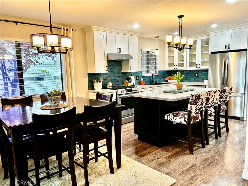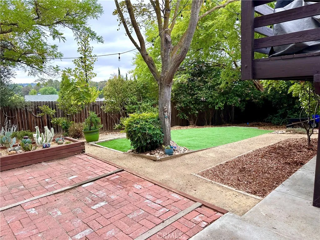 Beautifully remodeled single-level home offers three bedrooms and two bathrooms, blending comfort with modern upgrades. The heart of the house is the remodeled kitchen, featuring updated cabinetry with soft-close doors, beautiful countertops, and a spacious island with breakfast bar seating - perfect for casual dining or morning coffee. A bright dining area flows seamlessly to the large back deck, making entertaining effortless. Both bathrooms have been tastefully updated, and a central air conditioning system ensures year-round comfort. Outdoors, enjoy a huge backyard shaded by mature trees, a brick patio, and a garden area for relaxing or playing. The inviting back deck is ideal for gatherings or quiet evenings. Move-in ready, this home seamlessly combines modern upgrades with the charm of Paso Robles.