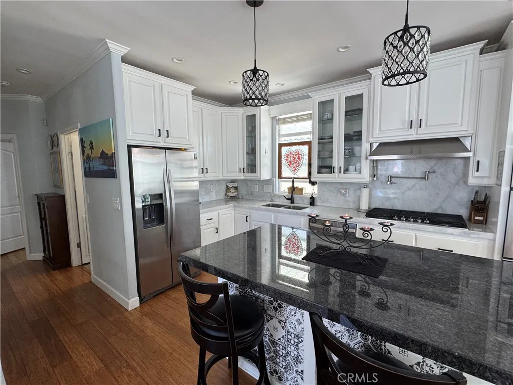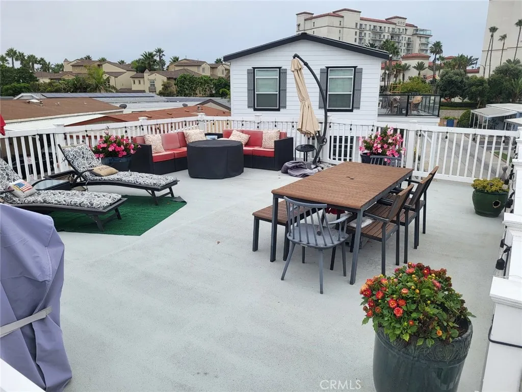 This is your little slice of paradise just waiting for you to relax and enjoy! Sit back on your roof top patio and enjoy the beautiful Southern California sun or a cozy fire at night.. The exclusive corner lot offers views of Pacific City and the sound of the waves. The beach is just out the park back gate and Pacific City mall is less than a block away featuring shops and restaurants. The famous Huntington Beach Pier is just mile away along with Main Street filled with entertainment and foody places. The near places are endless from this location. Ride your bike along the flat bike path that stretches from Newport Beach to Sunset Beach. The home itself is 3 bedrooms and 2 bathrooms and features bamboo floors throughout with 9 foot ceilings and cove finishes on walls. The kitchen is a chefs delight with granite and marble counters along with a built-in pot filler, a hot water ready tap and a built-in beverage fridge on the island. The home also features two decks to enjoy sitting either in the cozy wind and water proof cubby spot custom built or the 640 square foot rooftop deck perfect for entertaining and taking in the fireworks or annual air show. There is a dog yard with custom pet turf installed along with fencing and gates. The master bedroom is a retreat with a large bathroom and huge walk in closet. In the driveway is a mini garage for tools, bikes, surfboards, etc. There is an additional custom shed large enough to hold all the holiday bins and extra storage items. The exterior of the house was painted in February of 2025 and new custom rain gutters were installed
