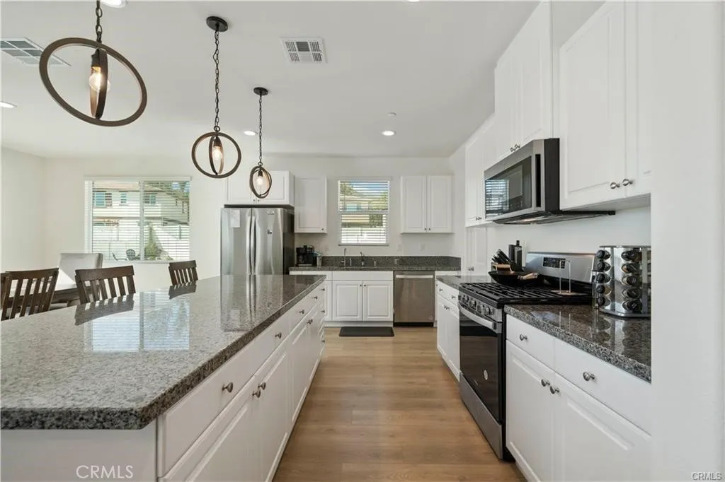 This beautifully upgraded cul-de-sac home offers 5 bedrooms, 3 full bathrooms, a spacious loft, and a dedicated bonus room, ideal for remote work, playroom, or home gym. With over 3,000sqft of open living space, it blends modern style with functionality. Step inside to light luxury vinyl plank floors, wide hallways, and an open-concept design that flows from the great room into the dining area and chefs kitchen. The kitchen features granite countertops, white shaker cabinets, stainless steel appliances, a walk-in pantry, and a large island with pendant lighting and bar seating, perfect for gatherings. Downstairs offers a full bedroom and bathroom, while upstairs features a large loft, full laundry room with storage, and four additional bedrooms. The primary suite is a private retreat with a spacious layout, spa-like bath, dual sinks, walk-in shower, vanity area, and a large walk-in closet. The backyard is an entertainers dream with one of the largest lots in the neighborhood. It features a concrete patio, new sod lawn, fire pit area, and low-maintenance landscaping. Enjoy privacy and room to relax or entertain. Additional features include: Bonus room on main level, Tankless water heater, Energy-efficient features, Recessed lighting, Ceiling fans throughout, and 3-car attached garage Located in a quiet, desirable neighborhood close to parks, shopping, and schools, this turnkey home checks all the boxes. Dont miss your chance!