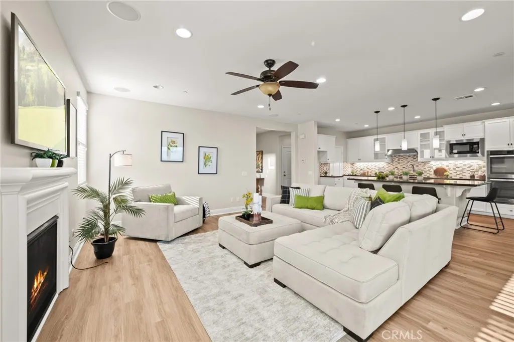 Located on one of the most desirable elevated lots in the gated community of Roripaugh Ranch, this home offers over 90 linear feet of unobstructed southern views, ultimate privacy, and room to add a future poolmaking it hands down the best lot in the neighborhood. Spanning just under 3,200 sq. ft., this sought-after 2nd Gen floorplan features a rare downstairs attached casita with its own private entrance. Designed as a fully functioning apartment, the casita includes a living room, bedroom, wet bar with under-counter refrigerator, built-in microwave, and its own stackable washer/dryer. Inside the main residence, brand-new LVP flooring extends throughout the downstairs. Off the entry is a private office, while the open-concept layout showcases a chefs kitchen with a large central island, granite countertops, stainless steel appliances, and a double oven. The kitchen flows seamlessly to the dining area and great room, both offering direct access to the covered California room with a built-in fireplaceperfect for indoor/outdoor living and entertaining. Upstairs, youll find a spacious loft, laundry room, and two secondary bedrooms with a shared bath. The luxurious primary suite is a true retreat, highlighted by three oversized windows framing the breathtaking views, a spa-like bath with dual sinks, soaking tub, walk-in shower, and an expansive walk-in closet. Living in Roripaugh Ranch means enjoying resort-style amenities including a clubhouse, 24/7 fitness center, pool and spa, tennis and basketball courts, newly added pickleball courts, two parks, and private walking trails.