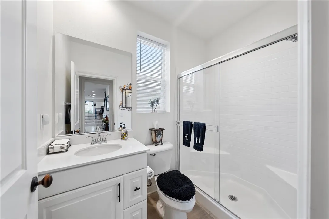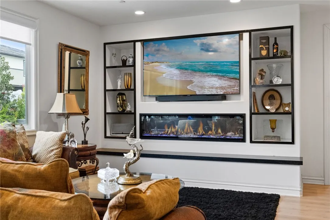 Spacious & Upgraded Home with Pickleball Court in Southwest Wildomar! Step inside this beautifully designed 5-bedroom, 3-bathroom home, where the first floor offers both comfort and functionality. The open-concept living area is an entertainers dream, featuring a built-in 75" TV, custom shelving, a striking 72 linear fireplace with a black granite hearth, and gorgeous plank flooring throughout. The formal dining room provides an elegant space for hosting dinners and gatherings. The chefs kitchen boasts a custom 8'4" granite raised eating bar, a stylish backsplash, an upgraded sink and faucet, under-cabinet lighting, a walk-in pantry, and a walk-through butlers pantryperfect for additional storage and serving. A wine cooler with a black absolute granite countertop adds a touch of sophistication. Also on the first floor is a bedroom and a full bathroom, ideal for guests or multi-generational living. Upstairs, youll find a versatile loft, and four additional bedrooms, including the luxurious master suite. The master retreat features a large walk-in shower with a dry area and a spacious custom-organized closet. Upgraded carpeting and a custom-designed interior staircase with wrought iron railing add to the home's elegant design. Outside, embrace California living in the beautifully landscaped backyard, maintained by a fully automated irrigation system. Enjoy a serene rose garden, citrus trees, a charming gazebo, and a pickleball/sports court for endless outdoor fun. RV access is prepped for full hookups, and the 3-car garage is equipped with a new sink and additional cabinets f