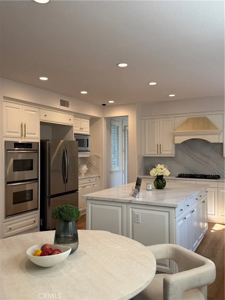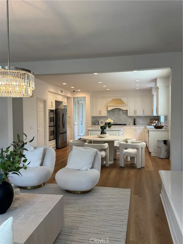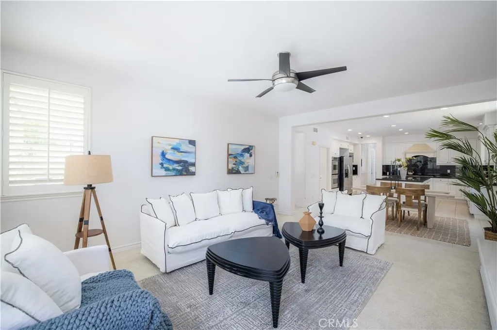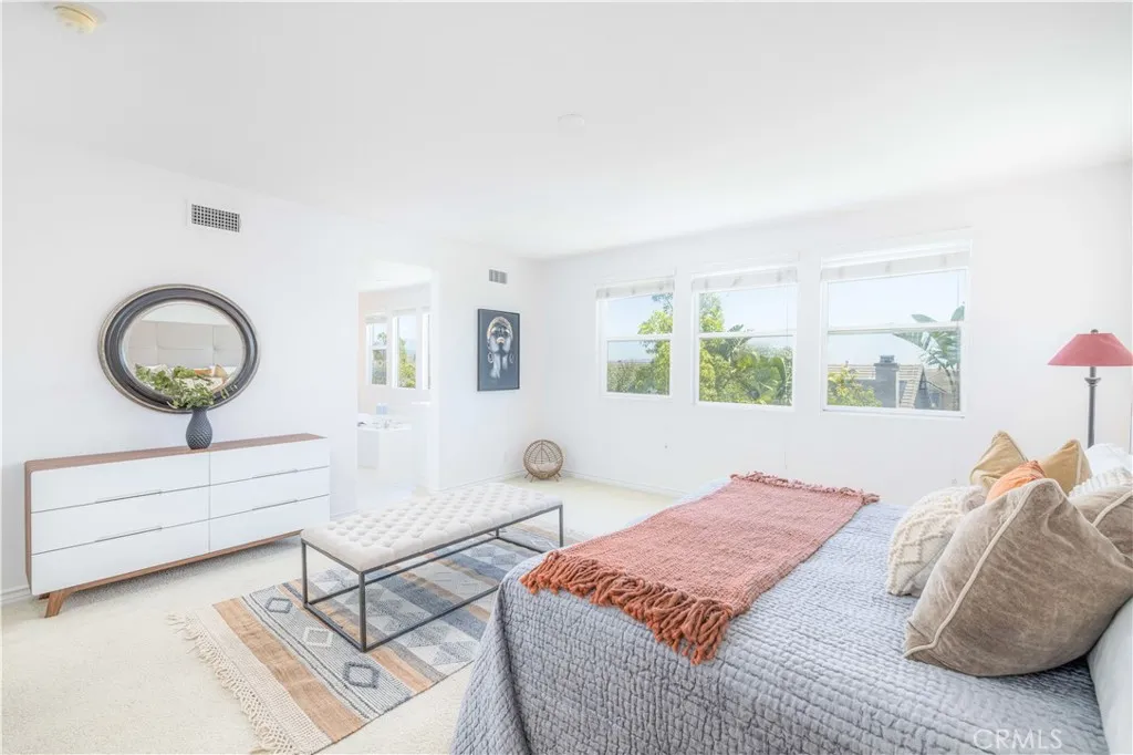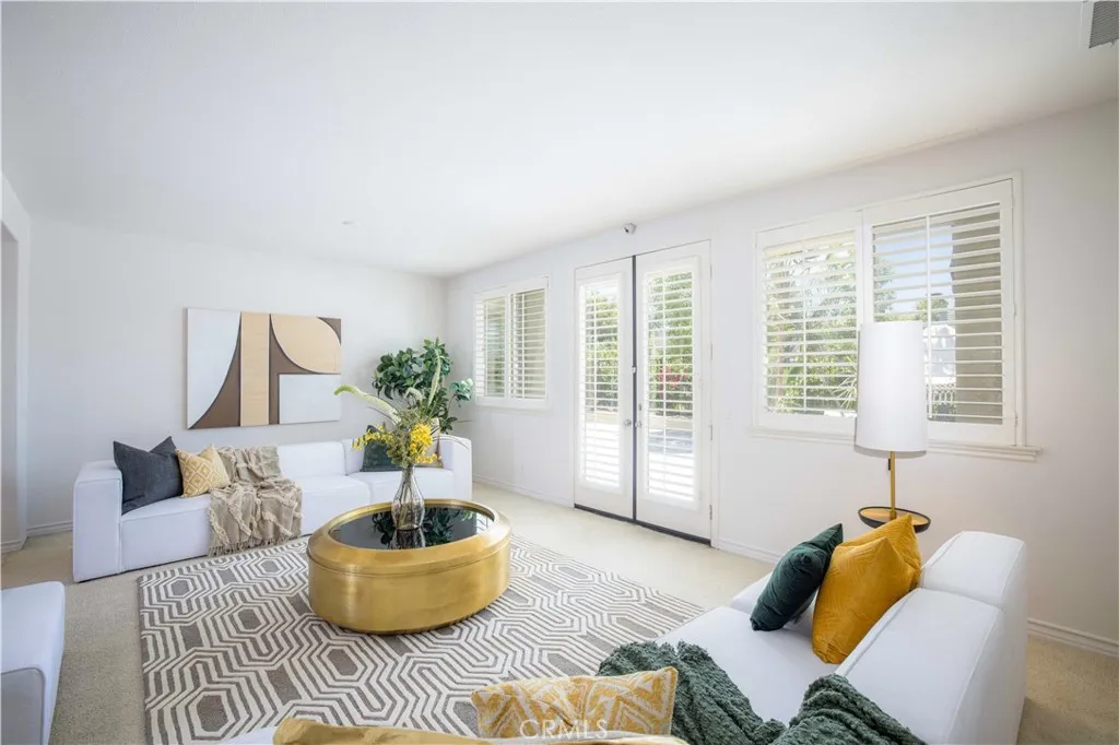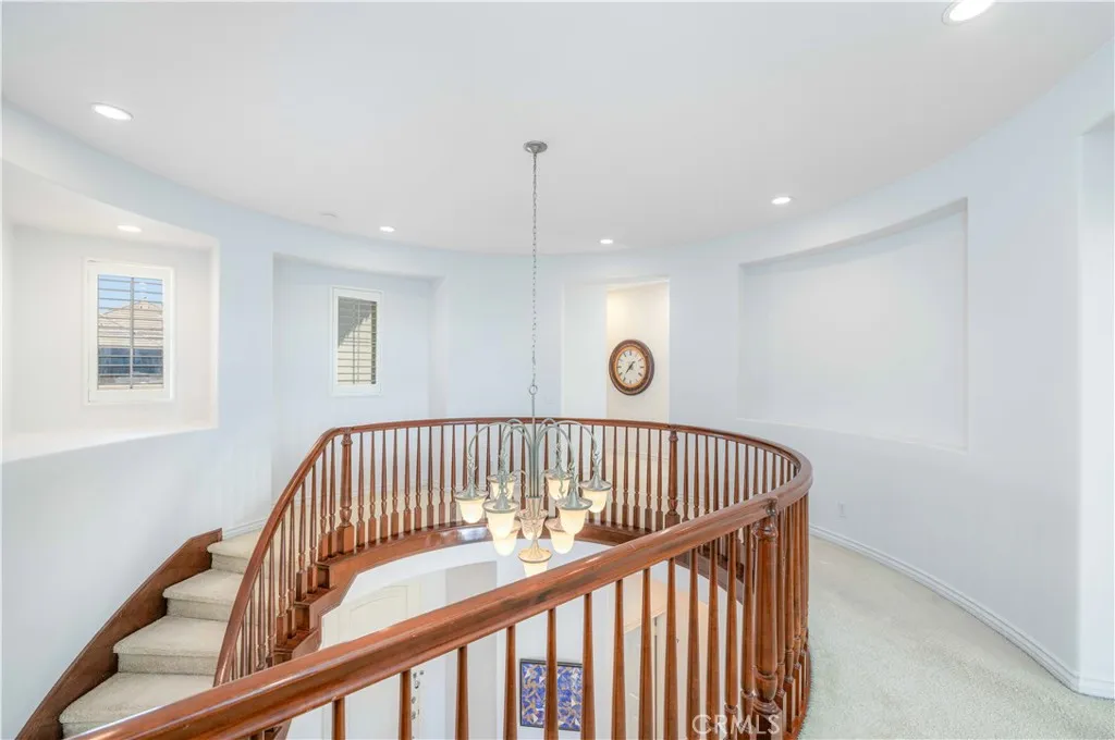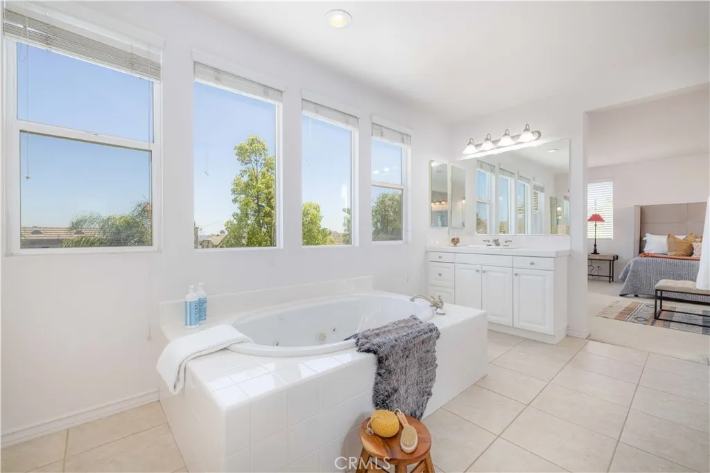 This stunning and inviting 4-bedroom, 3.5-bathroom property is ready for lease. As you enter, you are greeted by a grand entryway with a vaulted ceiling over 15 feet high and elegant hanging ceiling lights, leading to an open floor plan. The spacious family room, perfect for gatherings, is filled with natural light from numerous large windows throughout the home. To the left of the entryway, the modern kitchen boasts granite countertops, a generously-sized island with ample breakfast and bar-style seating, and opens to the dining area, living room, and a versatile den/office space that can easily be converted into an additional bedroom if desired. The first-floor bedroom (guest suite) features its own private bath, ideal for guests. Elegant roundabout stairs lead to the second floor, where you'll find a convenient separate laundry room and three additional bedrooms, including the primary suite. The primary suite accessed through double doors, is spacious and features a large private bathroom with separate his-and-hers walk-in closets, a separate bathtub and shower, vanity area, and dual sinks. The front-facing bedroom on the second floor offers access to a large balcony patio, perfect for enjoying sunny Southern California days and stargazing in the evenings. Additional features include French doors leading to a well-sized backyard, perfect for entertaining, and a unique, deep side-by-side two-car garage plus a separate one-car garage. The one-car garage offers flexibility for use as a workout or utility room. Lease terms negotiable.