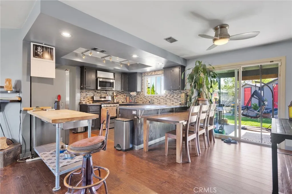 Welcome to your stylish 3-BEDROOM HOME WITH OFFICE, modern updates, and a relaxing outdoor retreat! This beautifully updated OPEN-CONCEPT 3 BED, 2 BATH home with an office offers versatile living space and tasteful finishes throughout. ** From the front, youll notice the CUSTOM FRONT FENCING with AUTOMATIC ROLLING GATE, wide driveway, fresh landscaping, and welcoming curb appeal. Inside, enjoy LAMINATE WOOD FLOORING throughout, a bright living room, and an open layout that flows seamlessly. Both bathrooms have been TASTEFULLY UPGRADED with updated tile, fixtures, and sleek finishes. Indoor laundry. ** The kitchen and dining areas connect effortlessly to the backyard, where youll find MULTIPLE SPACES TO RELAX AND ENTERTAINincluding a COVERED PATIO, TRANQUIL KOI POND, and an EXTRA SITTING AREA perfect for morning coffee or evening gatherings. ** Additional highlights include THREE STORAGE UNITS, SOLAR PANELS, RV PARKING with gated side access, and room for gardening or extra space. This home truly combines STYLE, COMFORT, and PRACTICALITY.
