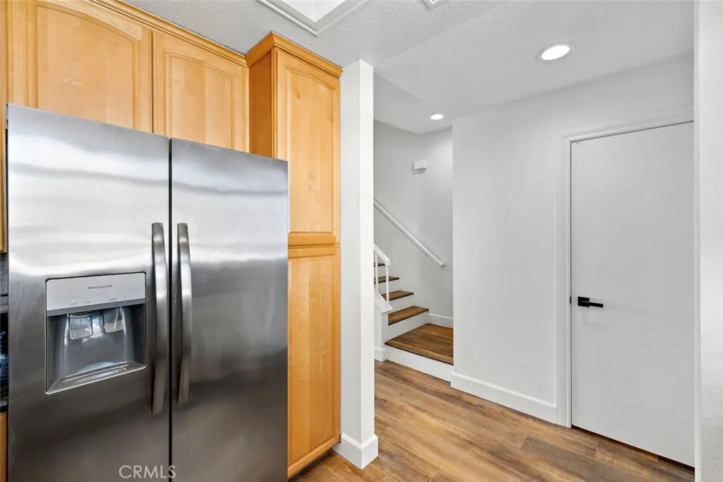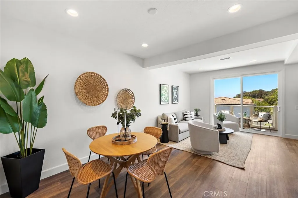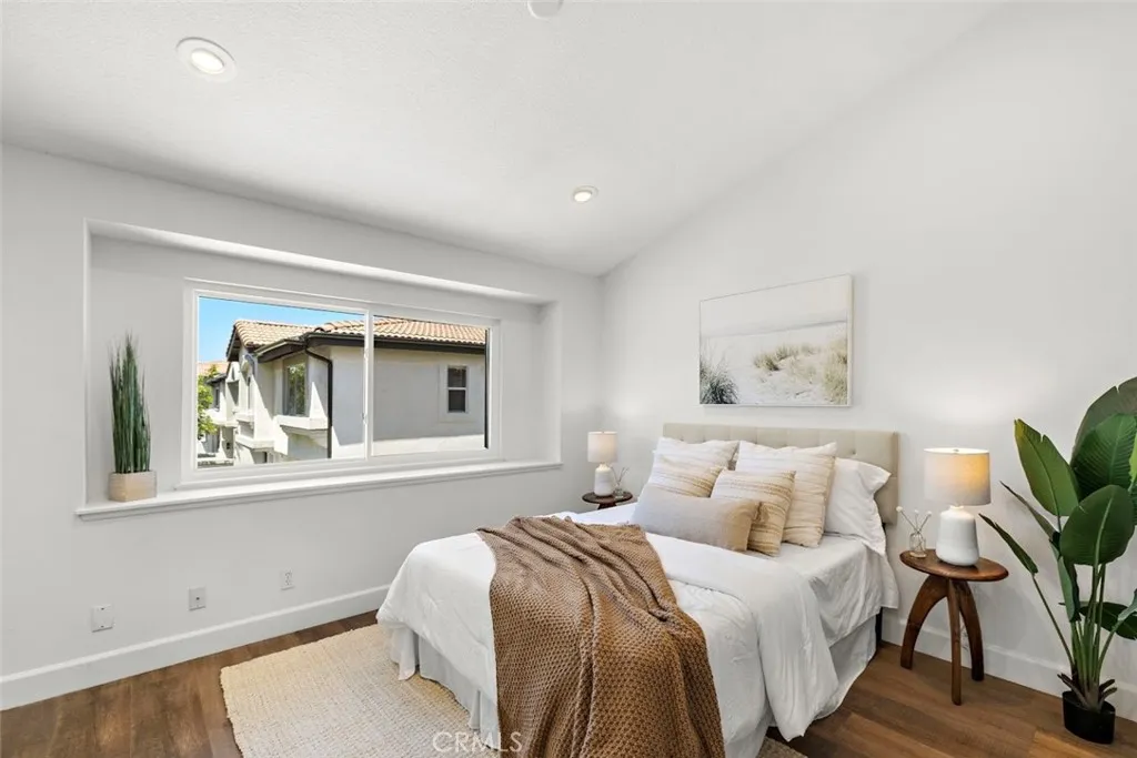Experience the Southern California lifestyle where comfort, style, and convenience meet in this beautifully updated two-story Laguna Niguel condo. Set on a hillside with no stairs to the front entry, the property offers easy access and elevated views of city lights, golf course greenery, and even the ocean from the upper level. Inside, the open-concept floor plan is filled with natural light and a relaxed, modern vibe. Dual primary suites provide flexibility and privacy for a variety of living arrangements. The kitchen combines function and design, with stainless appliances, a counter-depth refrigerator, and plenty of cabinetryopening seamlessly to the living room and private balcony. Upstairs, the remodeled primary bath and generous closets enhance the homes comfort and practicality. Recent upgrades include a 3-ton heat pump A/C system with new ducting, a new water heater, waterproofing in the heater closet, luxury vinyl plank flooring, fresh paint, double-pane windows upstairs, and a new sliding glass door downstairs. Additional enhancements feature smart LED recessed lighting, a Moen leak detection system, Ecobee thermostat, updated bathroom fixtures, reglazed guest shower, and new closet doors and hardware. Designed for low-maintenance living, the home also provides access to community amenities such as a pool, spa, gym, and BBQ area. The parking garage is conveniently nearby, and youre just minutes from Salt Creek Beach, Monarch Beach Golf Links, Dana Point Harbor, and Laguna Beach. Refrigerator, washer and dryer included!