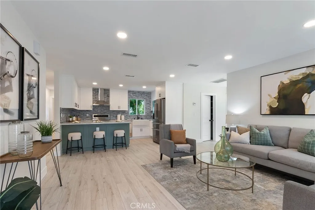 Completely remodeled home in the Los Altos neighborhood of Long Beach! Three bedroom, two bathroom, new kitchen, appliances, flooring, bathrooms, windows, lighting. You name it, it's new. One car garage with EV charging, and additional parking in the driveway. Garage is attached and laundry is in home for your convenience. Central heat and air for added convenience. Beautiful front porch to relax on and also a back porch. Close to transportation, Cal State Long Beach, shops, stores, and food. This is the front home and there are two small ADU's on the property.