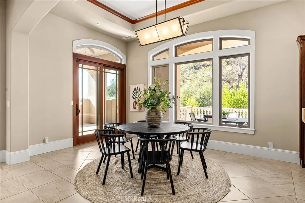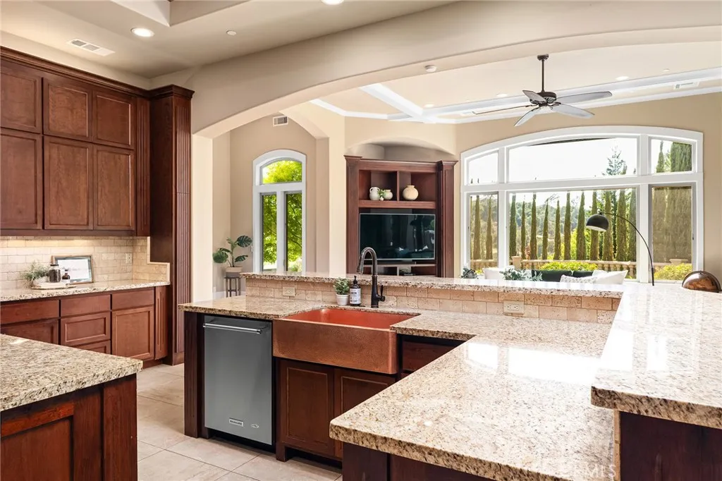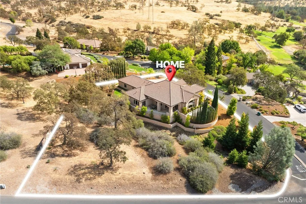 Welcome to Canyon Oaks, one of Chicos most exclusive gated communities. This remarkable residence sits on a full acre with a seasonal creek and mature trees, offering peaceful surroundings and panoramic views that stretch for miles. Inside, the grand entry sets the stage with soaring ceilings and dramatic double doors. The open layout highlights a spacious living area anchored by a custom fireplace and expansive windows framing the natural scenery. The kitchen is a showstopper, featuring rich cherry cabinetry, granite countertops, a copper farmhouse sink, large island, and premium appliancesan ideal space for both everyday cooking and hosting gatherings. Designed for indoor-outdoor living, the home opens to an impressive 1,500-square-foot travertine patio where you can entertain, dine, or simply take in the views. The primary suite feels like a retreat, complete with a cozy sitting area and fireplace, direct access to the patio, a luxurious bathroom with a jetted soaking tub, dual-head shower, double vanity, and abundant closet space. Additional bedrooms include a secondary suite with its own bath, plus two guest rooms. A private office with French doors (and its own closet) could easily serve as a fifth bedroom if needed. Practical features enhance the lifestyle here as well, including a 4-car garage with room for a golf cart, custom finishes throughout, and beautifully landscaped grounds that blend seamlessly with the natural surroundings. This is more than a houseits a rare opportunity to experience refined living in one of Chicos most sought-after communities.