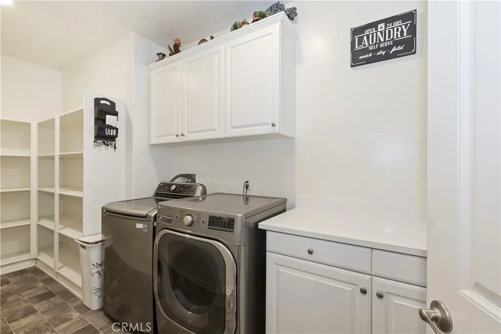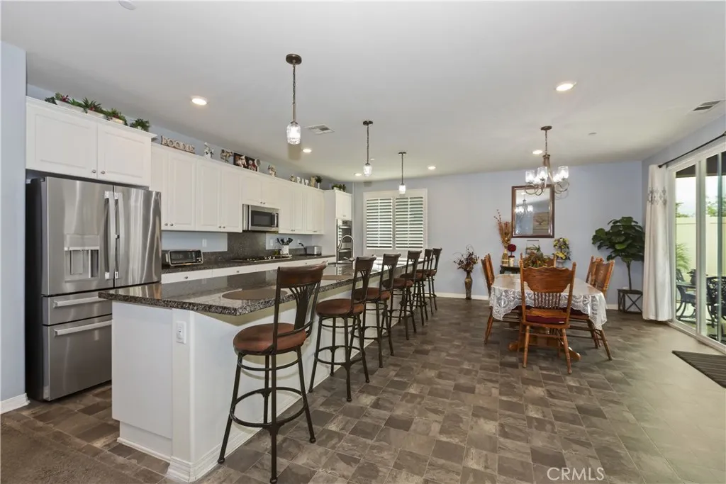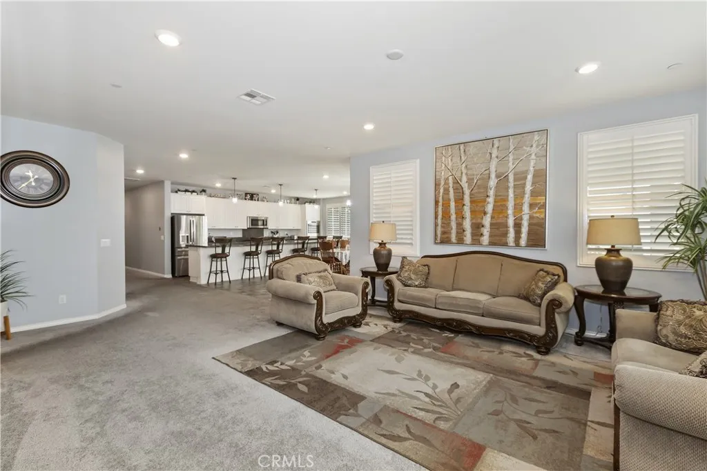 Welcome Home! This could be the home you have been waiting for! 28662 Wedelia offers any buyer an amazing opportunity to own a gem within this lively Menifee neighborhood. The thoughtful choices of upgrades in this 2,683 square foot home offer tiled flooring at entry, ceiling fan light fixtures, window shutters, custom interior paint just to name a few. Also, featuring five spacious bedrooms and 2 bathrooms and a guest half bathroom. When you walk through the door the comfort of the home is shown by the wonderfully kept condition. The magnetic gathering space of this wonderful home is the family kitchen, which boasts an expansive island perfect for meal preparation and entertaining, upgraded countertops, upgraded white shaker cabinets, and top-of-the-line stainless steel appliances, including a countertop stove, double oven, and built-in microwave. Recessed lighting and pendant lighting over the island keep the space warm and inviting. The kitchen is open to the spacious dining, and open to the family room appointed with a gas starter fireplace. With the door out to the covered patio space with ceiling fan and lighting this home is perfect for hosting gatherings or enjoying quiet family meals. This primary bedroom is a private retreat sure to be satisfying to any buyer. With ample space and convenience of its own primary bathroom with dual sinks and separate tub and shower, an oversized walk in closet. Outside upgrades include custom hardscape in front and back with a widened driveway for more space to park and backyard with planters added, lemon and peach trees, backyard o