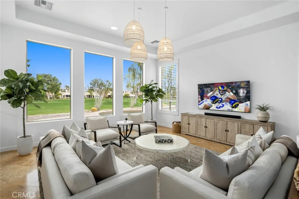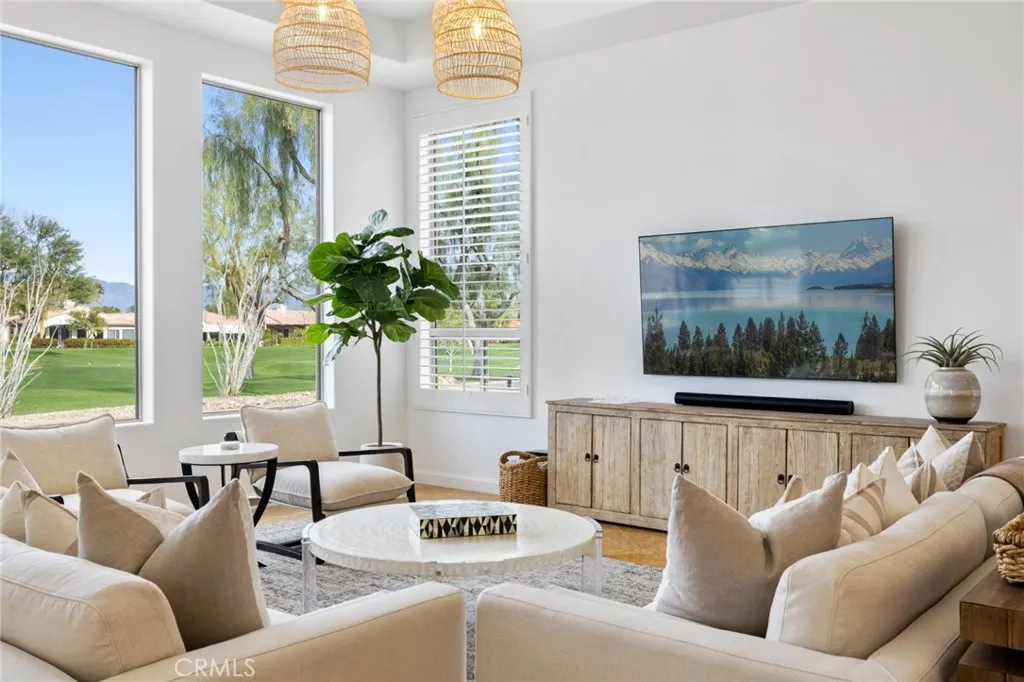 This completely outfitted, open-concept design exudes California chic throughout its 4-bedroom, 5-bathroom single-level floor plan. Comfort and unsurpassed style elevate the guest experience overlooking the second fairway on the nearly 15,000-square-foot private parcel in the guard-gated community of the Citrus Club. The desert lifestyle continues as you enter the fully equipped and remodeled chefs kitchen featuring crisp white cabinetry, quartz counters, and a complete stainless-steel solution from Thermador and Viking. A center island and ample bar seating are ideal for the chef who enjoys socializing while preparing meals. Dining accommodations include a formal dining room, breakfast nook, patio seating, and a covered loggia with Infratech outdoor heating. This remarkable property boasts an extensive amenity list and numerous building system upgrades, including Samsung TVs, Roku video streaming, Sonos surround sound, iPad & Wi-Fi controls, whole-house audio, a pool, spa, billiards room with a wet bar, and fiber internet. Centrally located by the La Quinta Resort, PGA West, Polo Fields, Indian Wells Tennis Gardens, and only a short distance to El Paseo or downtown Palm Springs.