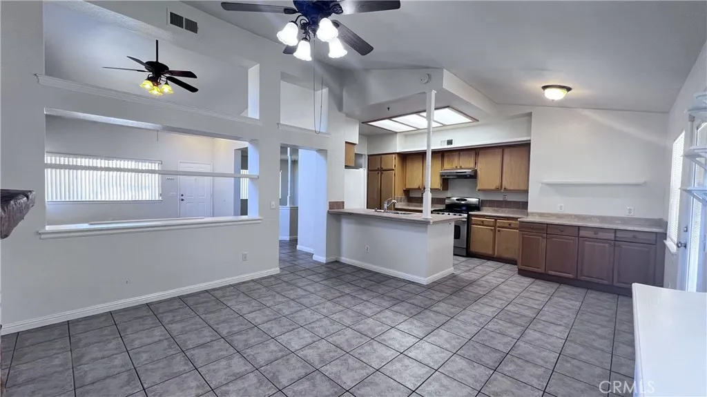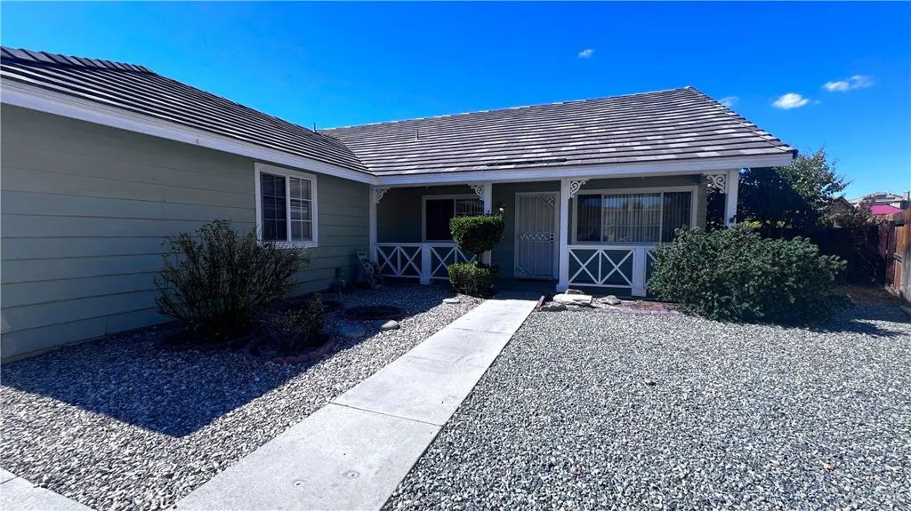 Great 3 bedroom, 2 bathroom home located on a cul-de-sac in North Victorville. Tile and carpet flooring throughout. Formal living and dining rooms. Beautiful fireplace in the family room. The kitchen includes appliances, plenty of cabinet/counter space and a breakfast bar. The bedrooms are good sized. The primary is large and has a walk-in closet. The primary bath features dual vanities. Full, front yard landscaping. The fully fenced back yard would be great for entertaining with a covered patio. Washer and dryer hook-ups, ceiling fans, central heat/air and so much more!!! Close to schools, shopping and I15 for commuters. **Part of the garage has been converted into a room.**
