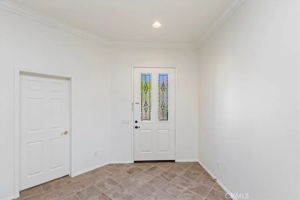 Welcome to this stunning single-story home in the highly desirable Clarendon Hills communityan exclusive neighborhood made up entirely of single-story residences, offering unmatched privacy and charm. Ideally located in the heart of Murrieta, this 2,701 sq. ft. home combines spacious design, thoughtful upgrades, and a rare dual-master layout. From the moment you arrive, youll be greeted by an inviting courtyard entry accented with brick paver trim. Inside, youll find brand-new interior paint just completed in a crisp, timeless white, creating a bright and welcoming atmosphere. The expansive kitchen features modern white cabinetry, a massive island, engineered quartz countertops, and a large walk-in pantry. A built-in desk area offers convenience, and the kitchen opens to the family room highlighted by a cozy fireplace. The laundry room includes a sink and cabinetry, and the washer and dryer are included. The primary suite boasts an upgraded bath with engineered quartz counters, shower and tub surround, and a massive walk-in closet. On the opposite side of the home, a second oversized bedroom with en-suite bath and direct access to the private single-car garage creates an ideal setup for multi-generational living, a guest suite, or a home office. Two additional bedrooms and another full bathroom provide flexibility for families of all sizes. Crown molding in a main living area and ceiling fans add comfort and style. Parking and storage are abundant with a two-car garage featuring built-in cabinets plus a separate single-car garage with its own entry. Step outside to the priv