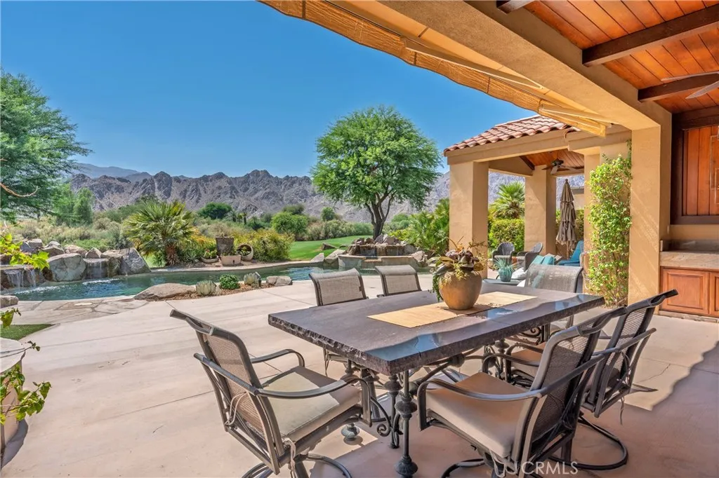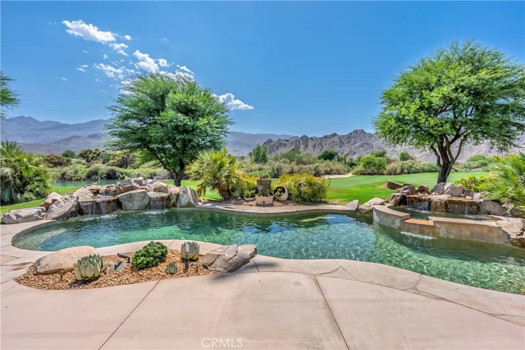 FRONT ROW views of the stunning Santa Rosa Mountains and a rare double fairway and lake location with no neighbors across from youjust endless, unobstructed VIEWS!!! Nestled on the prestigious Nicklaus Private Course in PGA West, this 4-bedroom, 5-bathroom luxury home with a detached Casita includes a sparkling private pool and spa, perfect for soaking up the La Quinta sun or enjoying desert evenings under the stars. Step inside the custom iron door and you'll catch a glimpse of the exceptional amenities and workmanship in this home, from the soaring tongue and groove ceilings, solid core doors and and Pella windows, this home is designed for those seeking comfort and space for entertaining. Whether youre gathering for world class golf getaway, a family vacation, a desert escape that might offer glimpses of the local desert sheep. This pool home provides the perfect blend of elegance, space, and tranquility for your next adventure. Come spend a month and discover why so many return year after year!
